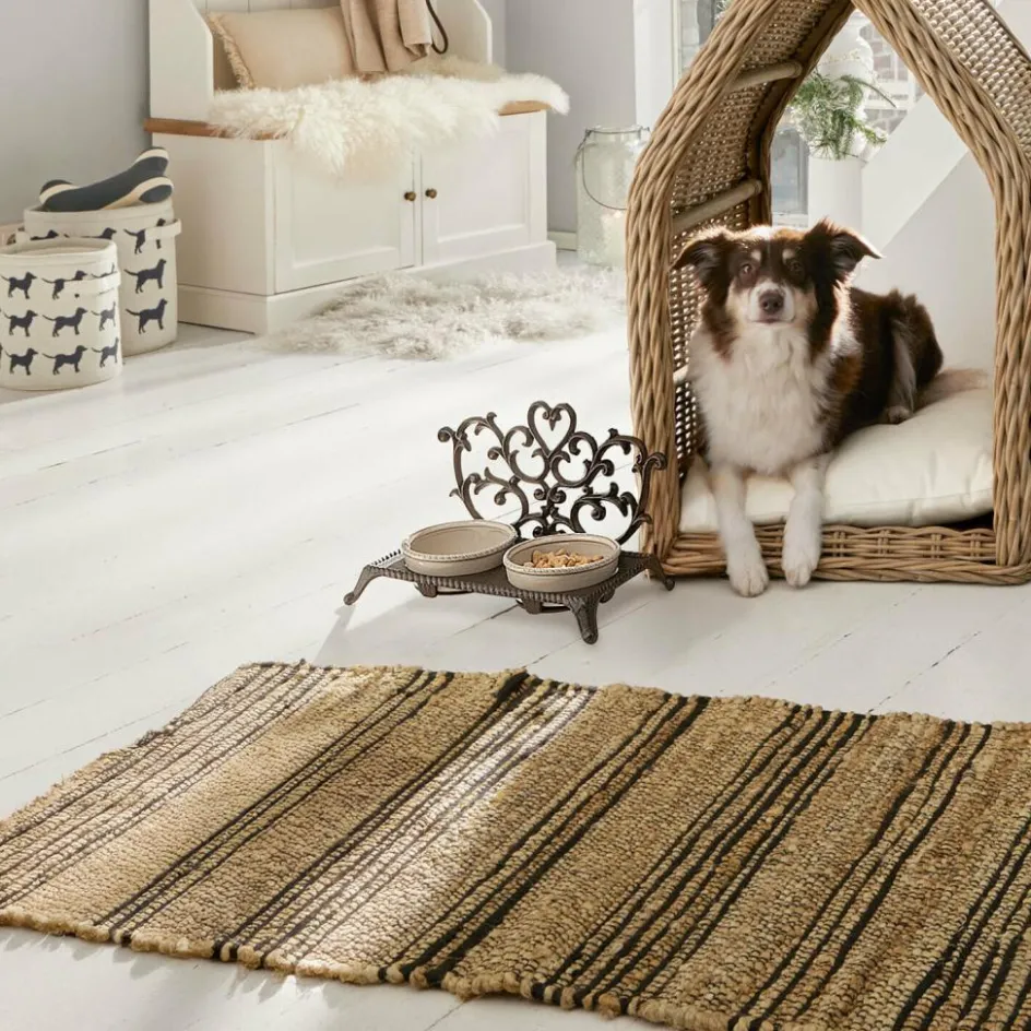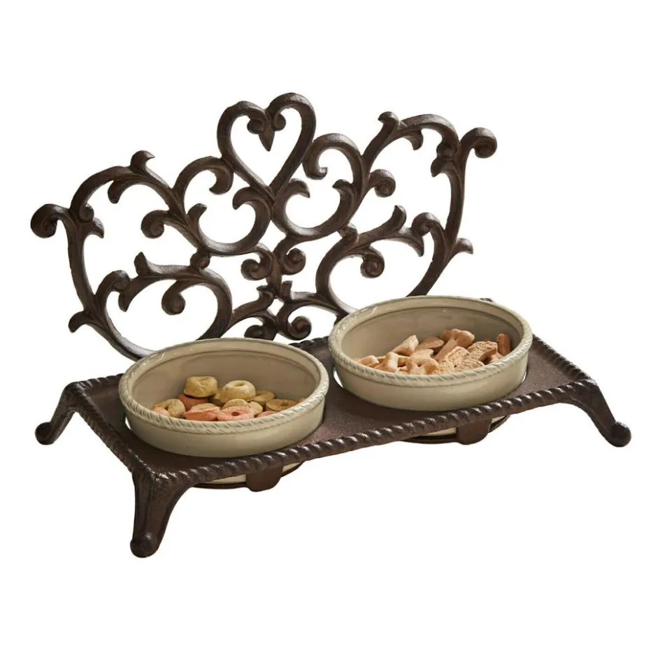Futterzeit mit Charme – dieser Napfhalter aus Gusseisen verleiht jeder Ecke ein Gefühl von Beständigkeit und Stil. Die dunkle, leicht schimmernde Oberfläche zeigt sich rustikal und charakterstark, während die fein gearbeitete Kante und die dezent geschwungenen Beine eine verspielte Leichtigkeit hineinbringen. Zwei Näpfe lassen sich passgenau einfügen und stehen sicher in der erhöhten Position – ideal für eine angenehmere Haltung beim Fressen. Ob in der Küche oder im Flur: Dieser Halter vereint Zweckmäßigkeit mit einem dekorativen Akzent, der nicht übersehen wird.