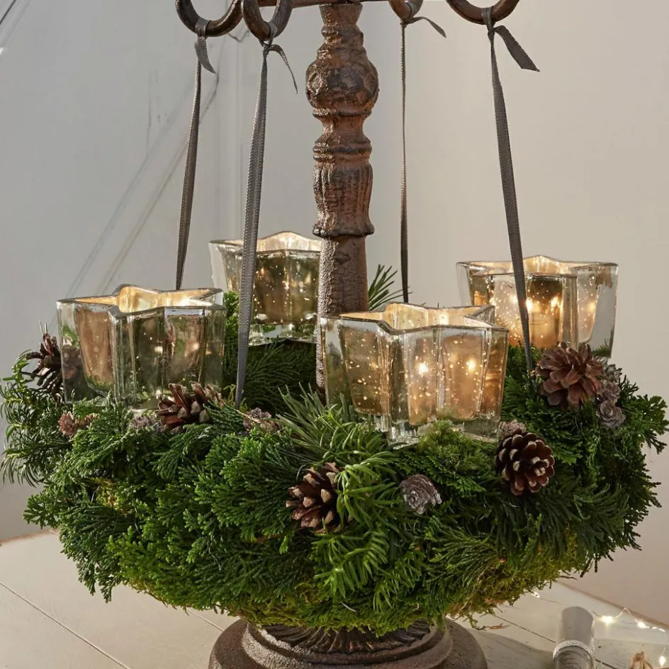 Die gläsernen Windlichter im 4er Set punkten mit einer schlichten Sternenform und einem silberfarbenem Finish. Der Clou: An der Unterseite befindet sich jeweils ein Dorn – zum schnellen und einfachen Befestigen auf einem Adventskranz. Das Ergebnis ist ein edler und zugleich moderner Look, der auch Ihr Zuhause ganz wunderbar weihnachtlich dekoriert. Die dickwandigen Kerzenhalter sind hochwertig gearbeitet und für Teelichter geeignet.
