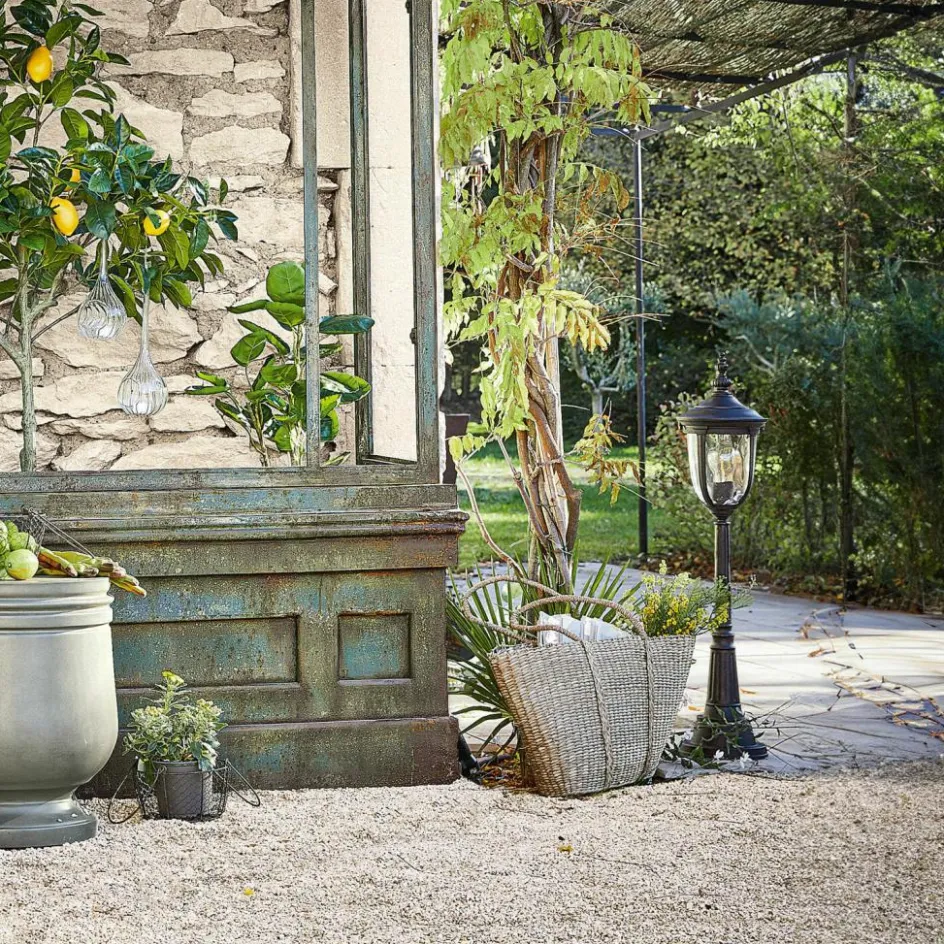 Diese stilvolle und klassische Stehlampe für draußen besteht aus robustem Aluminium und leicht unebenem Glas – ein reizvoller Effekt. Sie hat eine schöne, schmale Silhouette und schmeichelt jedem Ambiente. Zaubern Sie eine heimelige und dekorative Beleuchtung für Garten, Wege, Eingang und Veranda und sorgen Sie für Licht und Sicherheit. Das hübsche Accessoire wird mit Strom betrieben, sodass es richtig lange leuchten kann. Dieses edle Design entführt uns gedanklich in frühere Zeiten und es macht viele Jahre Freude. So lassen sich warme Abende auch noch lange im Freien genießen.