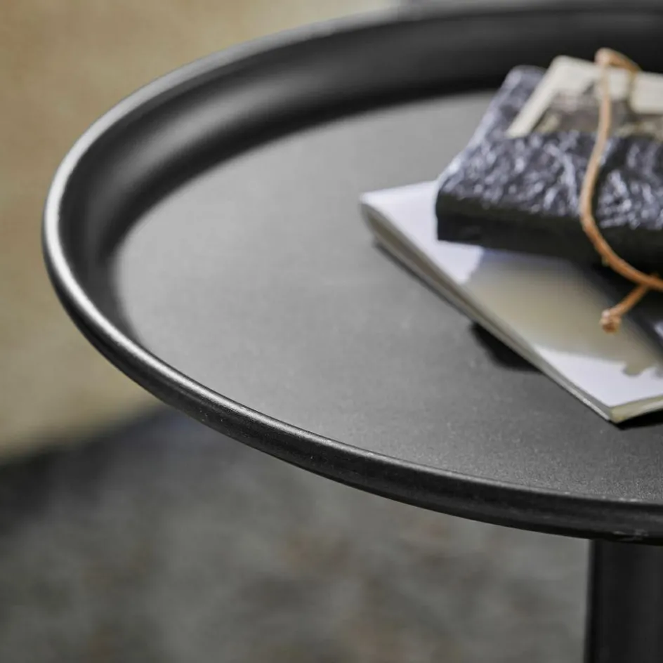Mit seiner skulpturähnlichen Silhouette – markant, aber nicht aufdringlich – zieht dieser Beistelltisch die Blicke auf sich. Der runde Sockel geht fließend in eine schlanke Mittelpartie über und trägt eine flache, leicht erhöhte Platte, die wie schwebend wirkt. Das Antikschwarz-Finish mit matter Oberfläche verleiht ihm eine starke Präsenz, ohne sich in den Vordergrund zu drängen. Ob im Wohnzimmer, neben dem Lesesessel oder als dekoratives Highlight – dieses Stück bringt eine ruhige Stärke ins Interieur, die überzeugt.