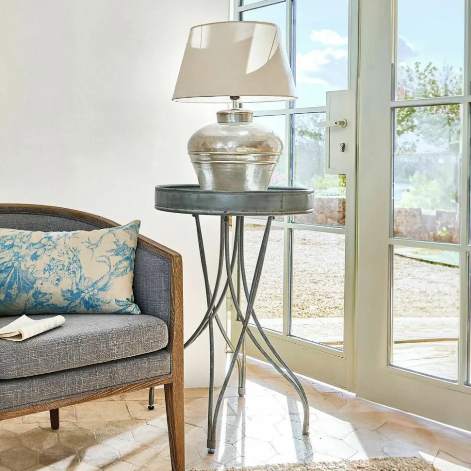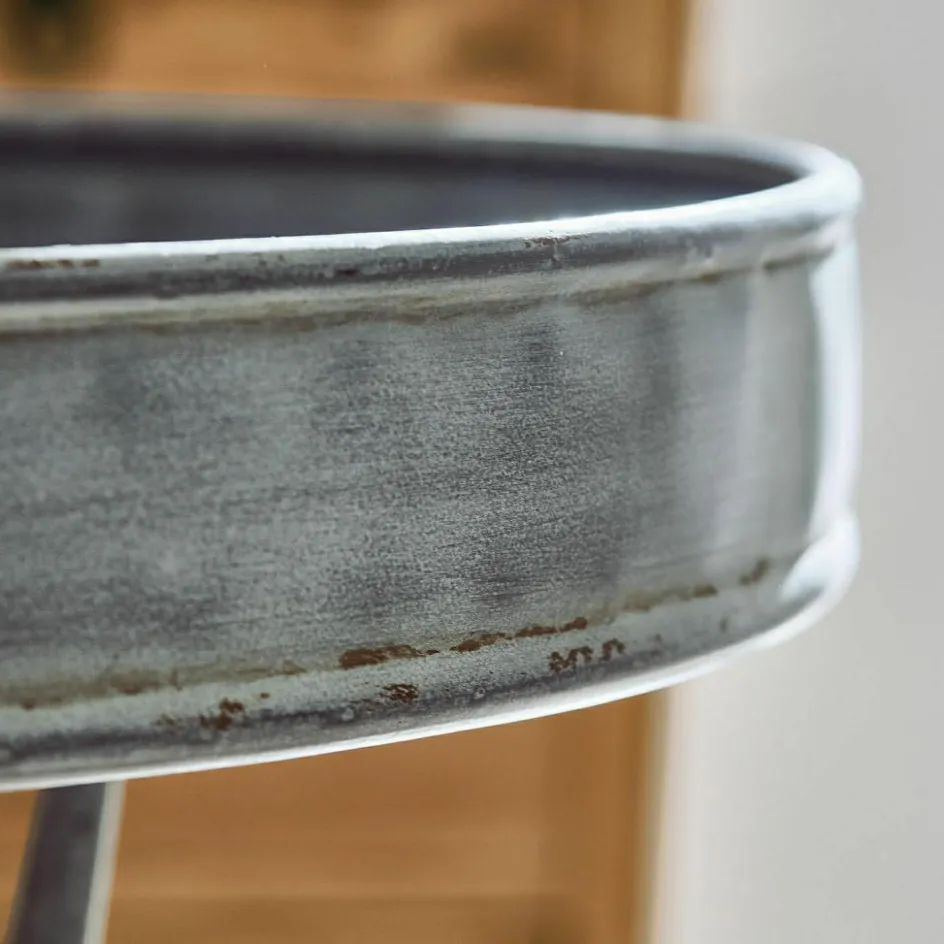Ein wahres Schmuckstück für Liebhaber des Vintage-Looks! Dieser Beistelltisch aus hochwertigem Eisen begeistert mit einem authentisch wirkenden Antikgrau-Finish, das ihn wie ein kostbares Fundstück aus vergangenen Zeiten erscheinen lässt. Die feinen, verschlungenen Tischbeine verleihen ihm eine anmutige Leichtigkeit, während die runde Tischplatte mit erhöhtem Rand nicht nur dekorativ, sondern auch funktional ist. Ob neben dem Sofa, im Flur oder als charmante Ablage für Pflanzen – dieser Tisch vereint ästhetische Raffinesse mit praktischer Funktion.