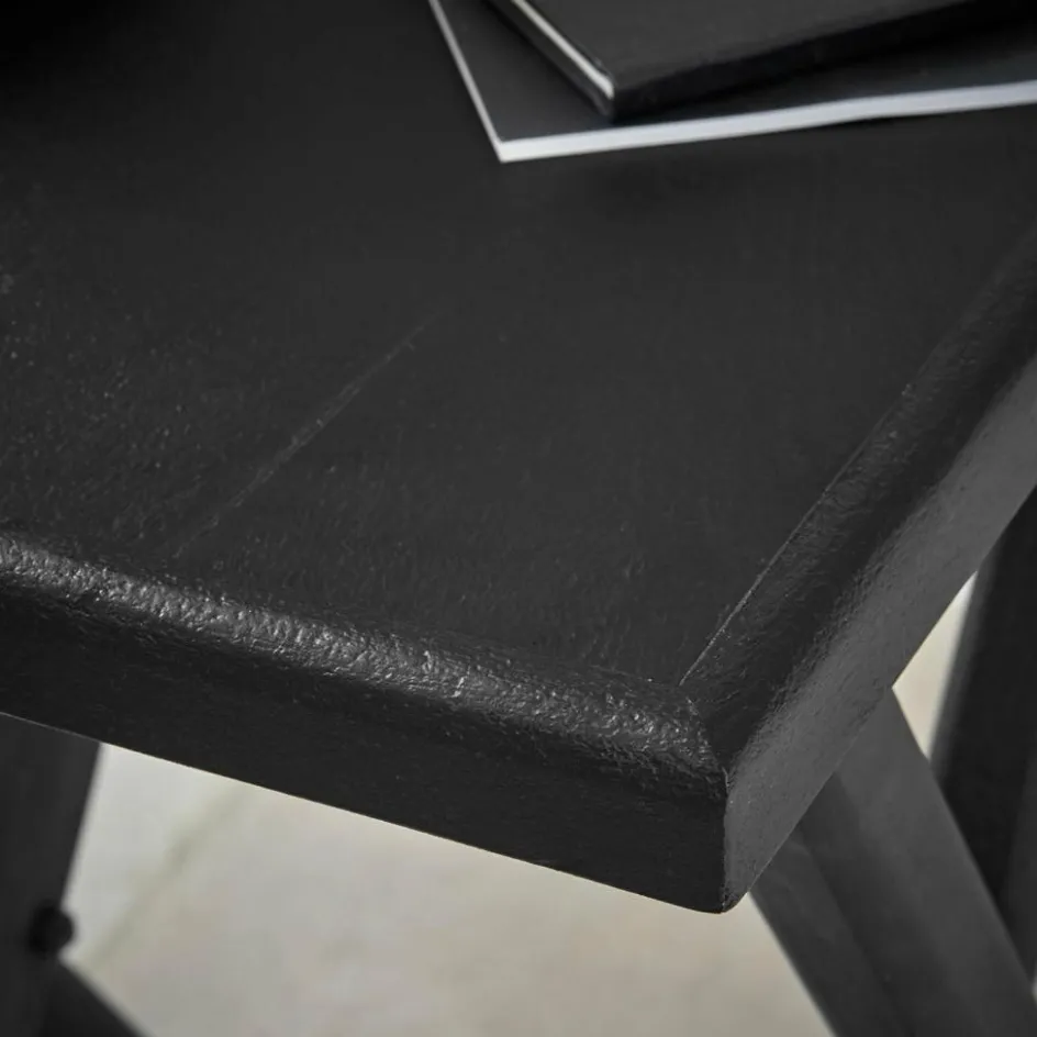 Dieser Beistelltisch bringt die Ästhetik des Einfachen auf den Punkt. Mit seiner rechteckigen Ablagefläche im Tablett-Stil erinnert er an klassische Butler-Tische – jedoch in moderner Interpretation. Die schwarze Lackierung mit gewollten Unregelmäßigkeiten und zarten Schleifspuren erzählt von Charakter und Individualität. Besonders das fest montierte Kreuzgestell schenkt dem Tisch eine stabile Basis und unterstreicht seine ausbalancierte Formensprache. Ob neben dem Sofa, im Flur oder als Nachttisch – er wirkt wie ein leiser Akzent mit starker Präsenz.