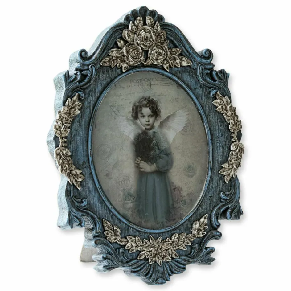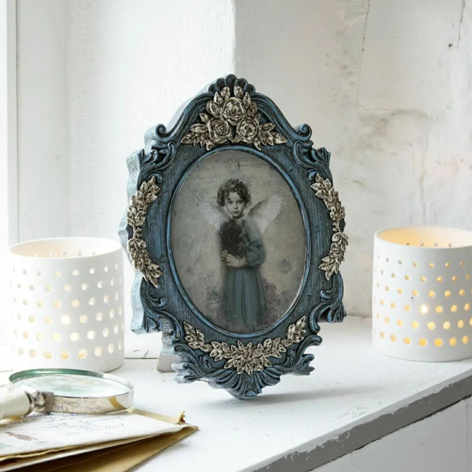 Hier kommt ein absolutes Lieblingsstück für alle, die den Zauber vergangener Zeiten schätzen. Der kunstvolle Bilderrahmen, wie auch das bereits fertige Bild sind in Gänze aus Polyresin. Vor allem der Rahmen ist sehr detailreich und überaus romantisch verziert. Er lässt an wertvolle Erbstücke denken und bringt sehr authentisch das Flair früherer Zeiten in Ihr Heim. Dabei ahmt der Kunststoff fast täuschend echt eine gewisse Holzoptik nach. Wer den Shabby-Chic mag, wird dieses edle Design lieben. Die samtige Rückseite ist ein weiteres gelungenes Detail. Das stilsichere Design sieht sehr ansprechend auf dem Schreibtisch, am Fenster oder auch im Regal platziert aus. Es ist zum Aufstellen konzipiert und wird die Herzen aller Nostalgie-Liebhaber erobern.