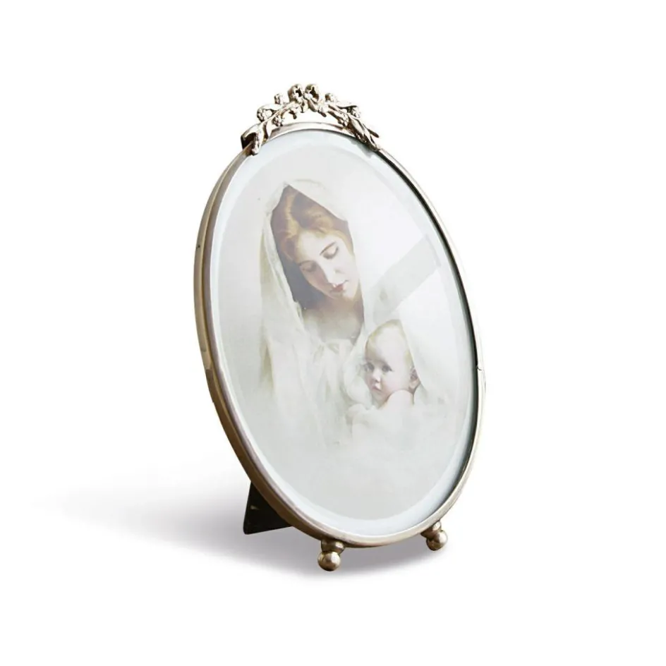 Ein echtes Lieblingsstück für alle Freunde des Romantischen und Nostalgischen. Der wunderschöne Bilderrahmen aus Messing und Glas ist mit einem floralen Detail und kleinen Füßchen geschmückt. Die Rückseite ist mit weichem Samt bezogen. Dort befindet sich auch ein Schieber zum Öffnen. In dem kleinen Schmuckstück finden Ihre liebsten Bilder und Kunstwerke ein wundervolles Plätzchen – ob Hochzeitsfotos, Fotos der Familie, Gemaltes der Kinder oder gepresste Blüten und antike Zeichnungen, so entsteht ein ganz persönliches Detail mit viel Liebe. Der zarte Rahmen macht sich vorzüglich im Regal oder auf dem Nachttisch aufgestellt. Auch in Kombination mit weiteren Bilderrahmen sieht er attraktiv aus. Am besten versteht er sich mit einem Ambiente im Shabby-Chic, in dem Stücke mit Geschichte und Patina zusammenwirken.