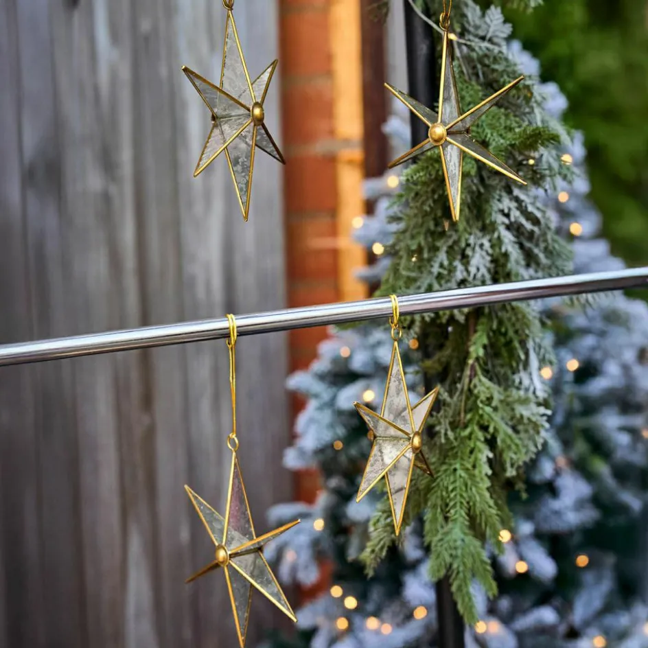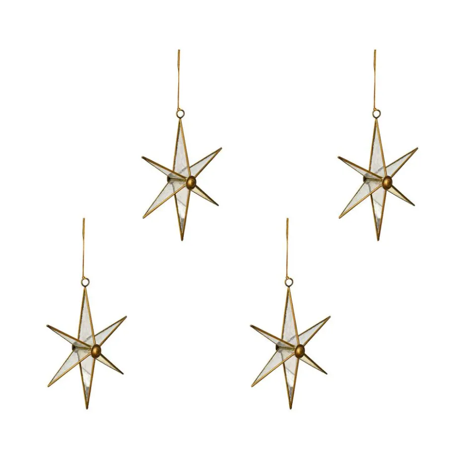 Wenn sich Messing und antik veredeltes Glas begegnen, entsteht ein Fest für die Sinne – und genau diesen Zauber verströmt dieses Sternen-Quartett. Die feinen Metallrahmen geben den zarten Glaselementen eine elegante Struktur und lassen den Raum wie von innen heraus leuchten. Die leicht gealterte Oberfläche erinnert an liebevoll überlieferte Dekoschätze und verleiht jedem einzelnen Stern eine kleine Geschichte. Ob im Fenster, an Ästen arrangiert oder als besondere Akzente am Weihnachtsbaum – die filigranen Anhänger aus Lederimitat setzen stimmungsvolle Lichtpunkte und fügen sich stilvoll in klassische wie moderne Festwelten ein. Und dank des goldfarbenen Bandes lassen sie sich mühelos inszenieren – jedes Jahr aufs Neue.