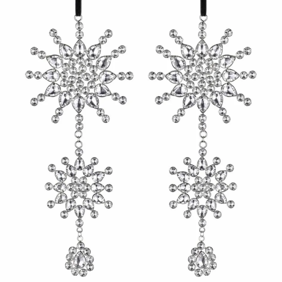Ergänzen Sie Ihre Weihnachtsdekoration mit diesem bezaubernden 2er Set Weihnachtsanhänger. Hergestellt aus robustem Eisen und kunstvoll mit strahlenden Acrylperlen besetzt, fangen diese Anhänger das Licht auf wunderbare Weise ein und reflektieren es in funkelnden Facetten. Die samtig weiche Aufhängung bietet nicht nur sicheren Halt, sondern verleiht auch einen Hauch von Luxus. Diese kunstvollen Anhänger, die in eleganter Schneeflockenform gestaltet sind, sind die perfekte Wahl, um Ihren Weihnachtsbaum, Ihre Fenster oder festliche Kränze zu schmücken. Lassen Sie sich von der magischen Atmosphäre verzaubern, die diese funkelnden Schmuckstücke in Ihr Heim bringen.
