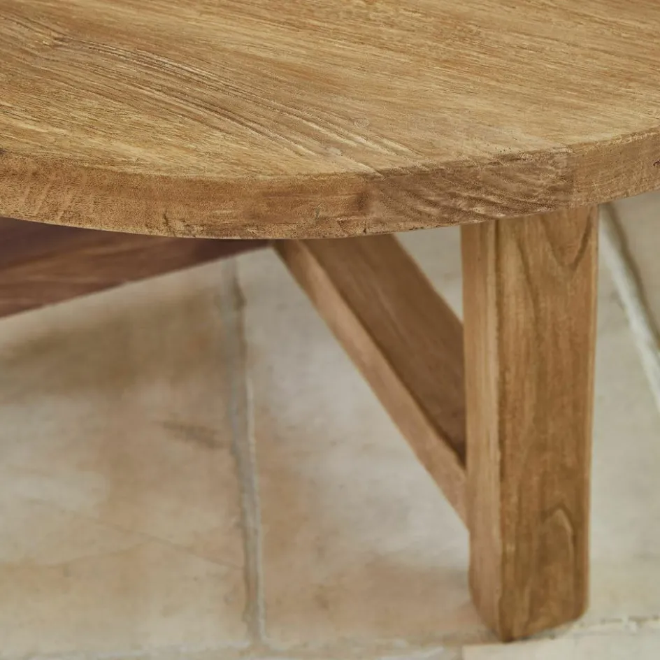 Mit seinem zeitlosen Design und der natürlichen Anmutung bringt dieser Couchtisch aus wiederaufbereitetem Ulmenholz ein Stück Natur in Ihr Zuhause. Die runde Tischplatte offenbart die faszinierende Struktur des Holzes, die von vielen Geschichten vergangener Tage zeugt. Die warme, helle Farbe des Holzes schafft eine freundliche Atmosphäre, die sich mühelos in verschiedene Einrichtungsstile einfügt. Das robuste Gestell mit den kraftvollen, gekreuzten Tischbeinen verleiht dem Tisch nicht nur Stabilität, sondern auch eine einzigartige Formensprache, die in jedem Raum zum Blickfang wird. Ob als Ort für gesellige Runden oder als stilvolle Ablagefläche für Bücher und Dekoration – dieser Tisch ist ein wahrer Alleskönner, der mit seiner Mischung aus Authentizität und Funktionalität überzeugt.