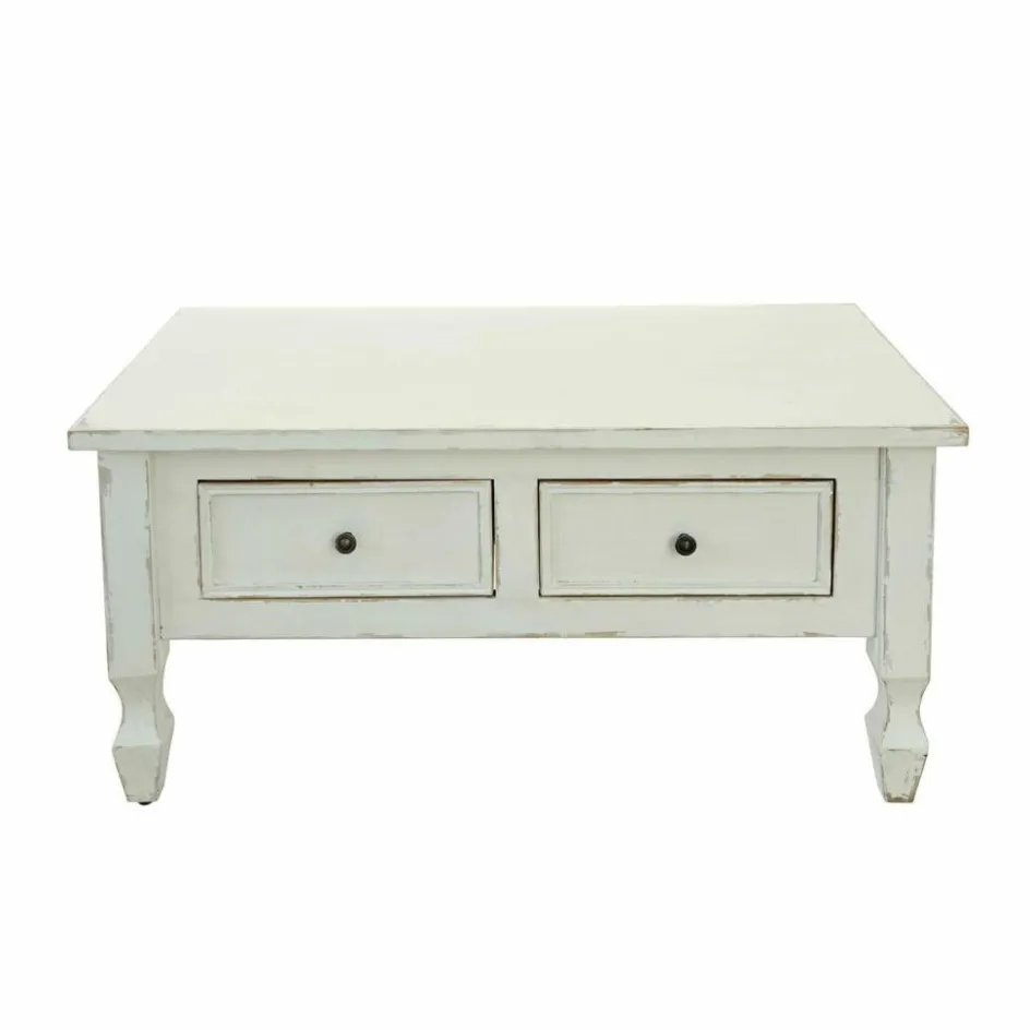 Dieser wertvolle und wunderschöne Couchtisch ist ein echtes Schmuckstück für Ihr Wohnzimmer. Er vereint Landhaus-Stil mit nostalgischem Flair und adelt jedes Ambiente. Das edle Design besteht aus Tannenholz, Furnierschichtholz, MDF und Kiefernholz im Mix. Ein hübsches Antik-Finish sowie eine lackierte Oberfläche zieren den niedrigen Tisch mit formschönen Füßen. Zwei Schubladen auf einer Seite bieten Raum zum Verstauen von Fernbedienung, Zeitschriften und anderem. Obenauf lassen sich Bildbände, Kerzen, Blumen und mehr ansprechend dekorieren. So steht der gemütlichen Auszeit auf der Couch nichts mehr im Wege. Auf Wunsch erhalten Sie bei uns auch die perfekt passende Eckkommode (22999).