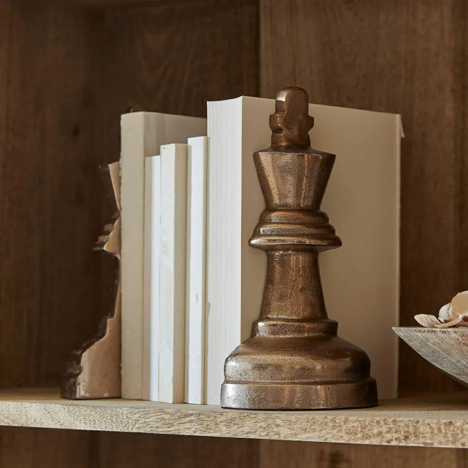 Umarmen Sie die Welt der Literatur und Strategie mit diesem eleganten Buchstützen-Set aus Aluguss, das an die edlen Schachfiguren König und Turm erinnert. Jedes Stück dieser Reihe ist in seiner Darstellung detailreich und durch das antike Finish auch visuell ansprechend. Sie stehen fest und würdevoll, bereit, die Werke großer Denker und Geschichtenerzähler zwischen sich zu halten. Die Faszination für das Schachspiel, ein zeitloses Symbol für strategische Finesse und intellektuelle Tiefe, wird in diesen Buchstützen lebendig. Sie sind ein unverzichtbares Accessoire für jeden, der Bücher und das Spiel der Könige schätzt und sein Zuhause oder Büro mit einem künstlerischen und funktionalen Element ausstatten möchte.