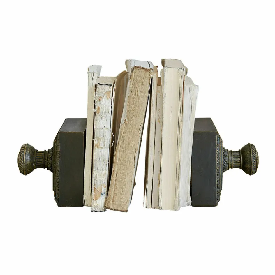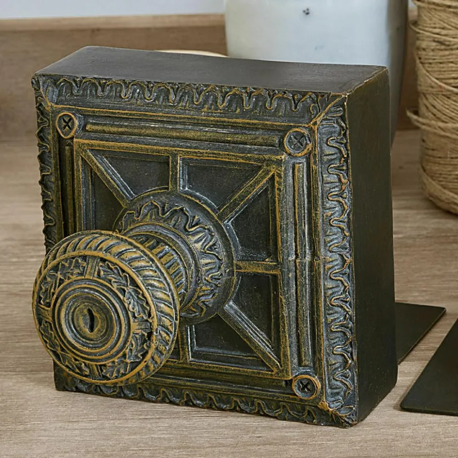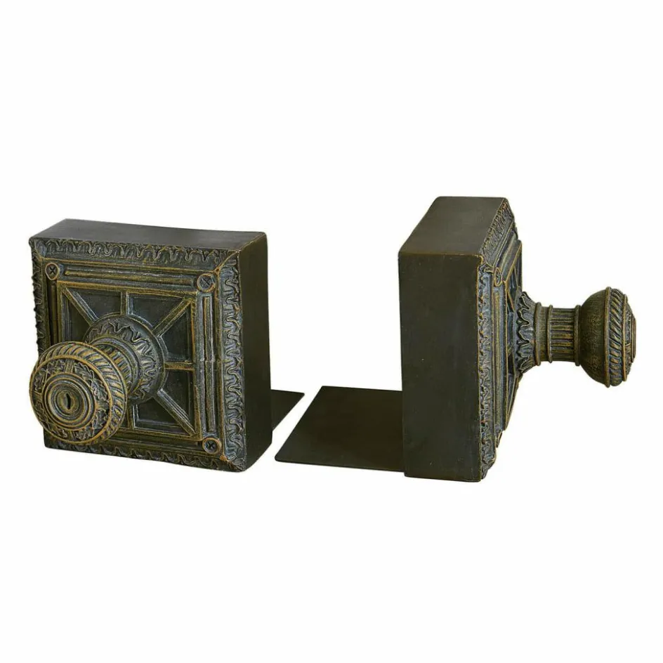 Ein Hauch von Geschichte für Ihre Bücher – dieses 2er-Set Buchstützen erinnert an prachtvolle Türschlösser vergangener Epochen. Die quadratischen Elemente sind mit kunstvollen Reliefs verziert, die an antike Schlossbeschläge erinnern und durch die handbemalte Oberfläche noch authentischer wirken. Die patinierte Farbgebung unterstreicht den nostalgischen Charakter, während das robuste Material für Stabilität sorgt. Ob im Bücherregal, auf dem Schreibtisch oder auf einer Konsole – diese Buchstützen sind nicht nur funktional, sondern auch ein wahrer Blickfang.