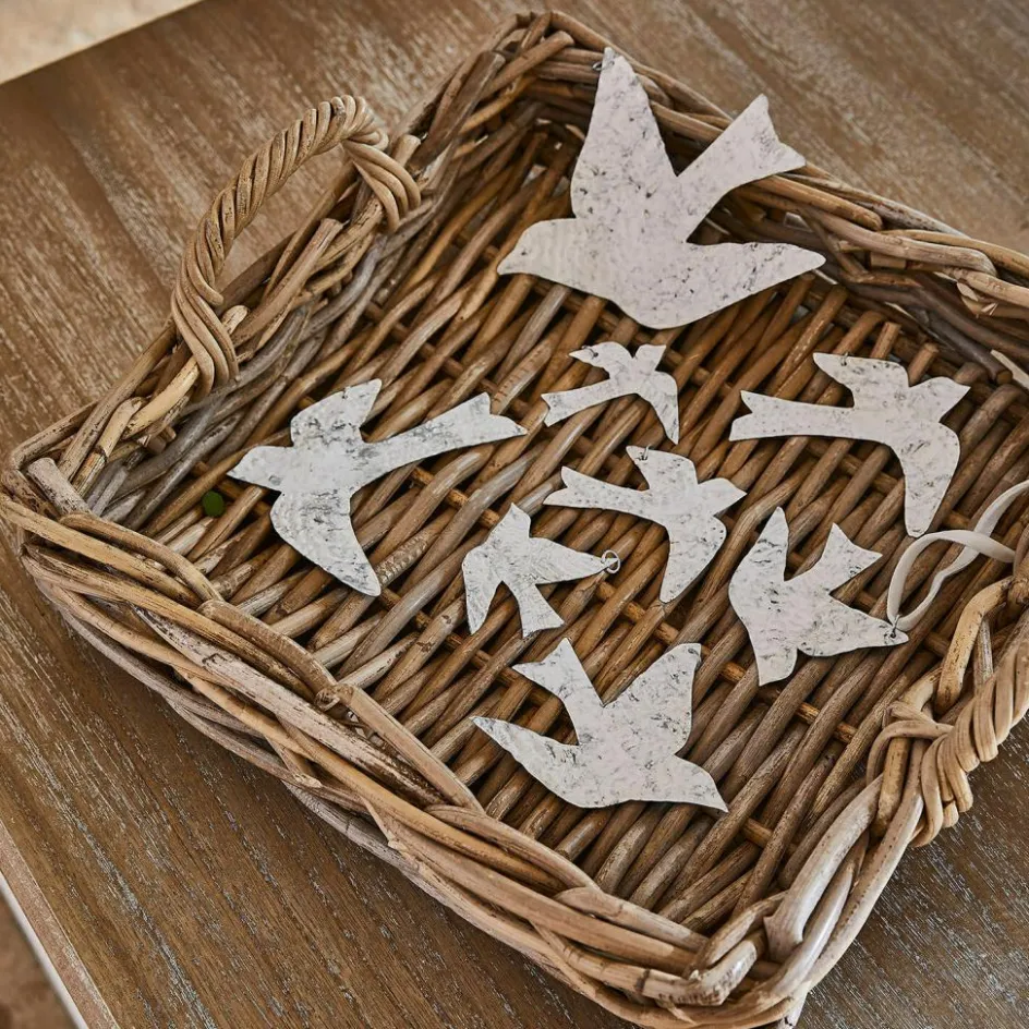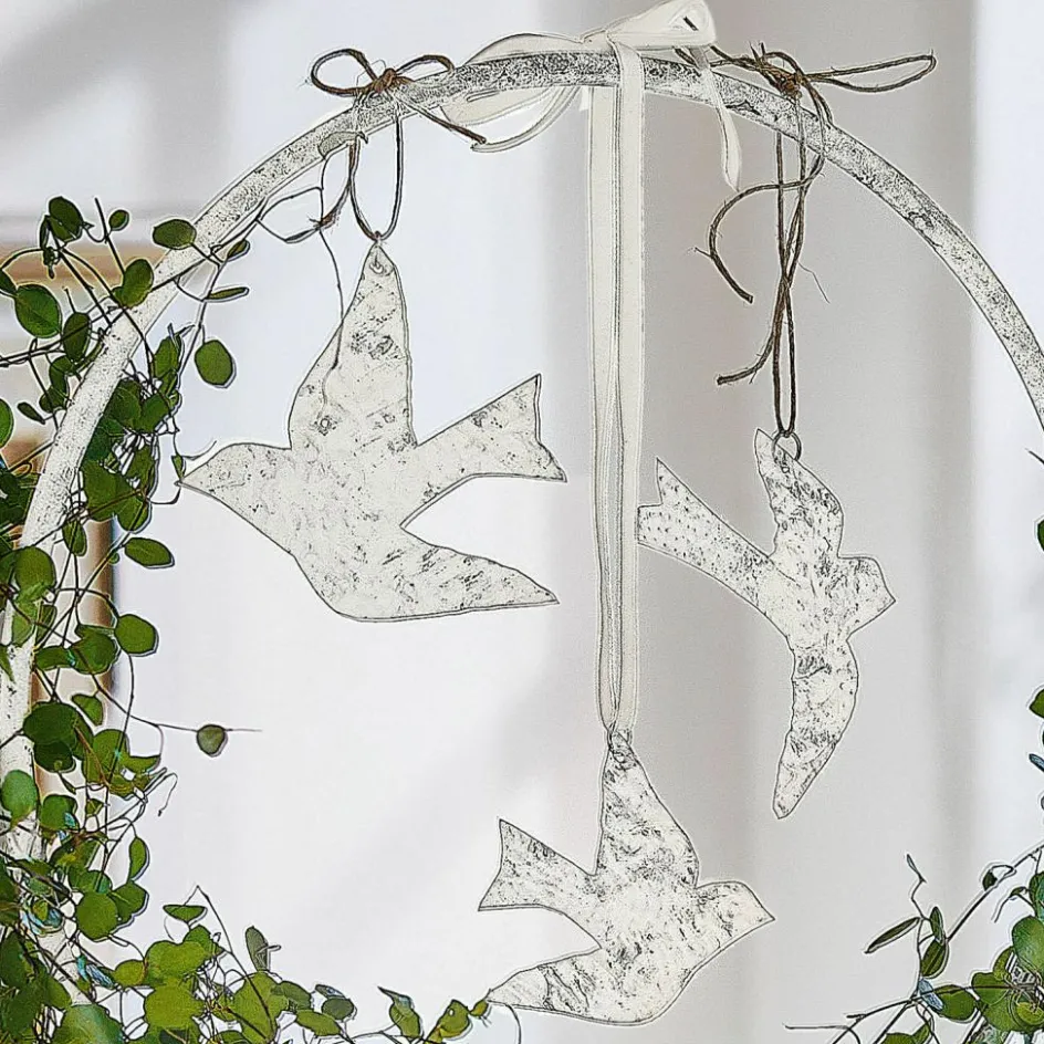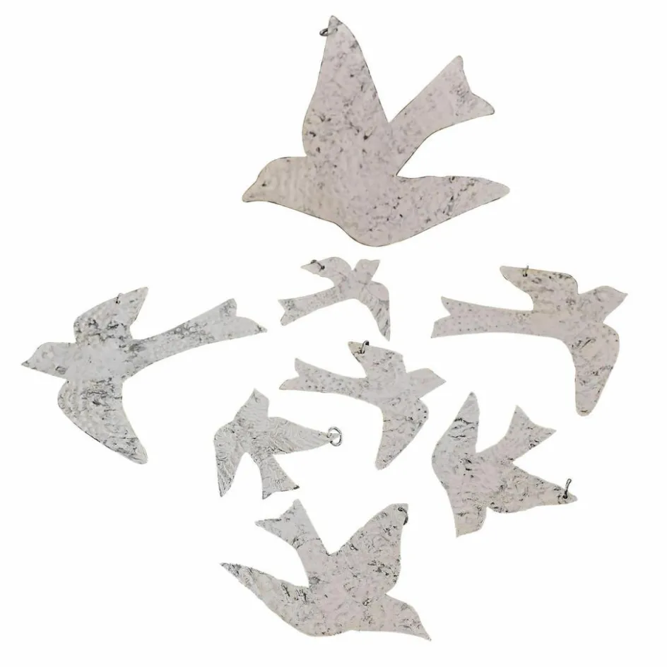Beleben Sie Ihren Raum mit diesem Ensemble aus acht Eisenanhängern, deren jede Silhouette die Eleganz und Grazie von Vögeln im Flug einfängt. Das antike Finish jedes Anhängers verleiht eine Dimension von Geschichte und Charakter, fast so, als wären diese Stücke über Generationen hinweg weitergegeben worden. Die gehämmerte Oberfläche schafft eine facettenreiche Textur, die mit der Umgebung interagiert und sich ständig verändert, je nachdem, wie das Licht darauf fällt. Diese Anhänger dienen nicht nur als schmückendes Element für Äste oder als Fensterdekoration, sie bringen auch eine rustikale Eleganz in jeden Raum, die die Sinne berührt und das Auge erfreut.