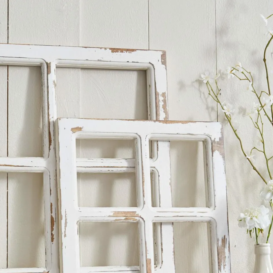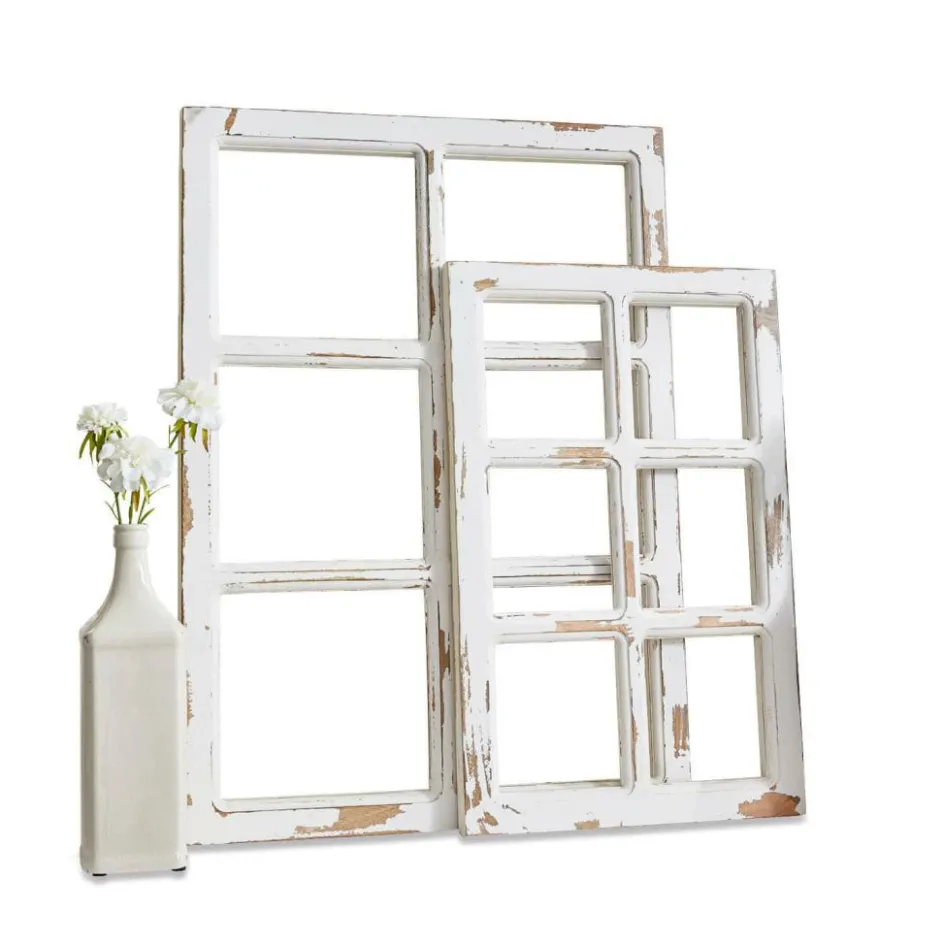 Manchmal darf es das Außergewöhnliche sein. Eigentlich würde man in diesem Rahmen-Set nur alte, ausrangierte Fenster sehen. Doch gerade diese Idee verleiht ihnen den besonderen Reiz und macht sie zu einzigartigen Deko-Objekten. Typische Abnutzungsspuren wie geplatzter Lack, Kratzer und eine Patina in antiker Optik bestimmen den ausgeprägten Shabby-Chic. Der Korpus und die eingesetzten Sprossen aus massivem Mangoholz unterstreichen den natürlichen Charme. In zwei unterschiedlichen Größen bilden sie ein harmonisches Duo, doch auch als Solisten haben Sie einen Platz in Ihrem Interieur bestimmt schon sicher. Jetzt möchten sie nur noch an die Wand gelehnt und ausgiebig dekoriert werden. Jede Jahreszeit lässt sich damit stimmungsvoll in Szene setzen – zur Osterzeit mit Buchsgebinden und Deko-Eiern, zum Weihnachtsfest mit schimmernden Kugeln, im Herbst mit bunten Schätzen der Natur. Im Mix mit Landhaus- oder Vintage-Möbeln verbreiten die Accessoires eine gemütliche Atmosphäre mit einem Hauch Nostalgie. Mit neuen Möbelstücken wirken sie spannend und modern.