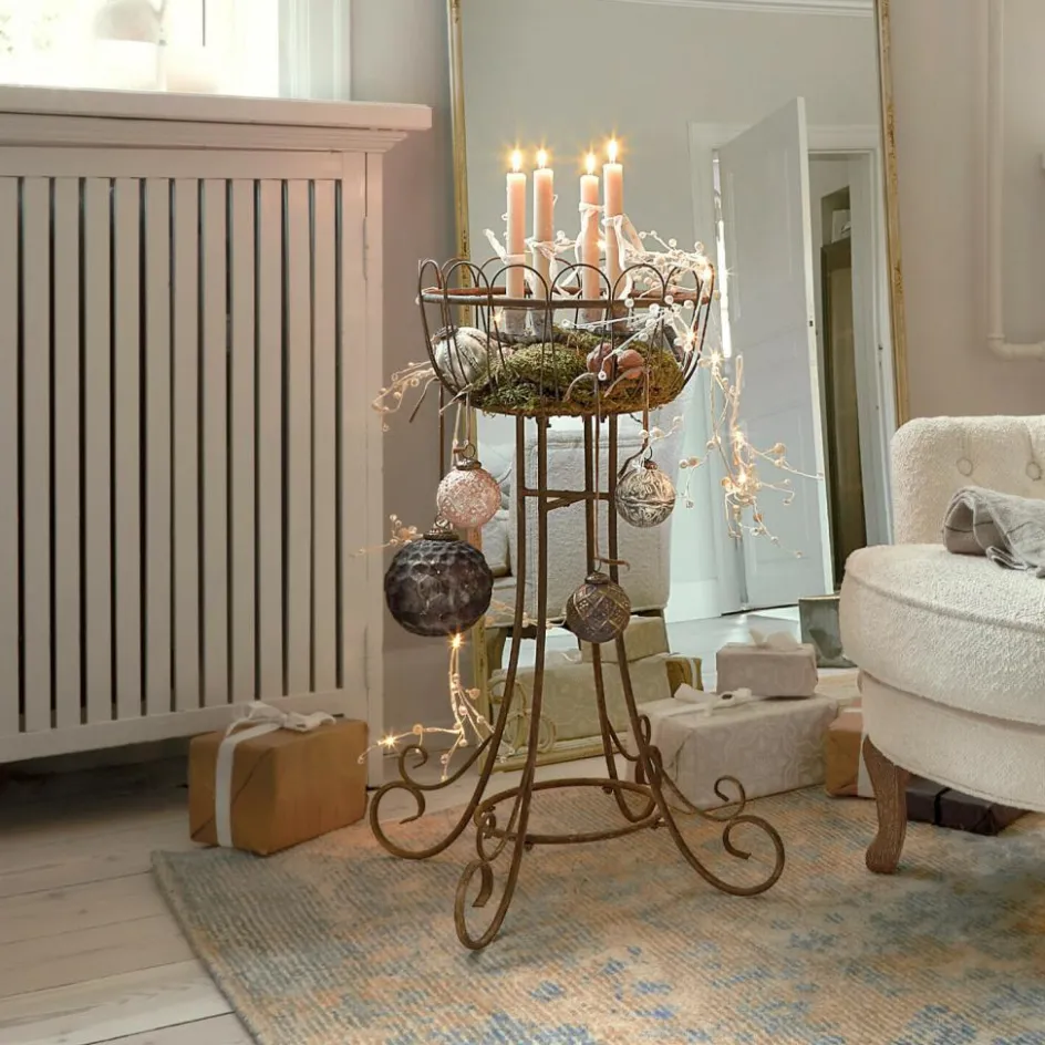 Ein Dekorationsständer, der Herzen höherschlagen lässt: Dieser handbemalte Ständer ist ein wundervolles Accessoire, das Ihr Zuhause in ein zauberhaftes Ambiente taucht. Mit seinem Antik-Finish strahlt er eine zeitlose Eleganz aus, die in jede Einrichtung passt. Präsentieren Sie Blumen und Kränze oder verwandeln Sie das Schmuckstück in einen nützlichen Obst-Ständer, indem Sie eine Schale oben auf legen – Ihrer Fantasie sind keine Grenzen gesetzt! Gestalten Sie den Ständer am besten saisonal, zum Beispiel mit einer schönen Osterdekoration mit Gras und bunten Eiern und verschönern Sie so Ihr Osterfest. An Weihnachten finden natürlich Tannenzweige einen Platz und im Sommer vielleicht ein paar selbst geschnittene Blumen.