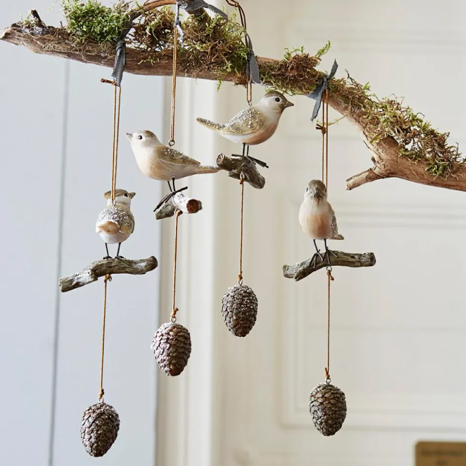 Dieses naturnahe Quartett aus Polyresin ist wirklich bezaubernd. Die süßen Deko-Spatzen wurden in Handarbeit gefertigt und sind fein handbemalt. Die Piepmätze wirken ganz lebensecht und sind sehr niedlich anzusehen. Die vier kleinen Spatzen thronen je auf einem Deko-Zweig mit einem daran hängenden Tannenzapfen, der leicht glitzert. Mit einer kleinen Öse lassen sie sich an gewünschter Stelle aufhängen, beispielsweise als Fensterschmuck. Kreieren Sie attraktive Deko-Arrangements und holen Sie sich das entspannte Gefühl eines Tages im Wald nach Hause.