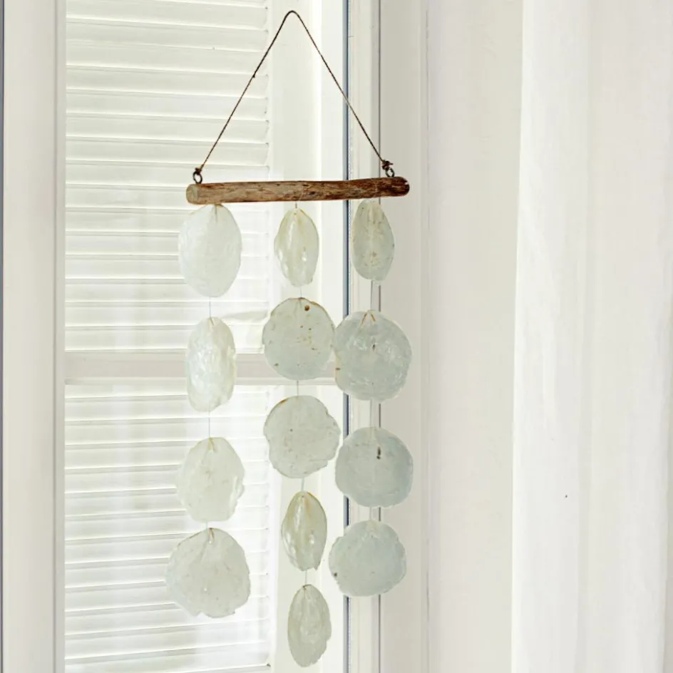 Ein wahres Highlight, welches Sie optisch und akustisch verwöhnt. Das filigrane Windspiel besteht aus wunderschönen, echten Capiz-Muscheln. Fährt ein Windstoß hindurch, erklingen zarte Klänge – Balsam für die Seele. So kommt viel positive Energie in Ihr Heim. Die Aufhängung ist aus Treibholz, sodass Sie hiermit Natur pur genießen. Durch das individuelle Treibholz und auch die echten Muscheln wird aus jedem Windspiel ein Unikat. Verschönern Sie damit Balkon, Garten und Terrasse und platzieren Sie das hochwertige Windspiel vielleicht in den Ästen eines Baumes oder an Wandhaken. Innen wie außen gelingt Ihnen damit das ganze Jahr ein absolut stilvoller und umwerfend hübscher Deko-Akzent, der jedes Ambiente adelt. Es ist auch eine geschmackvolle und individuelle Geschenkidee für liebe Freunde.