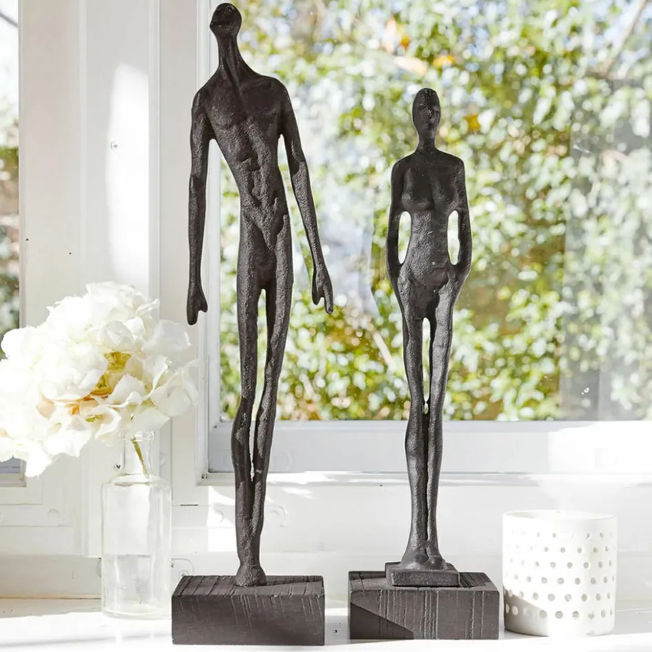 Zauberhafte Schmuckstücke für Kunstliebhaber: Diese spannenden Skulpturen sind Dekoobjekte der besonderen Art. Zieren Sie damit die Konsole in Ihrem Eingangsbereich oder platzieren Sie sie auf einem Tisch in der Diele oder Ihrem Arbeitszimmer. Nebeneinander oder auch korrespondierend an unterschiedlichen Plätzen im Raum. Beide sind aus Aluminium mit Detailliebe von Hand gefertigt und stehen auf einem Podest aus Mangoholz. Trotz unterschiedlicher Materialien sehen die Figuren aus wie aus einem Guss. Einfach edel!