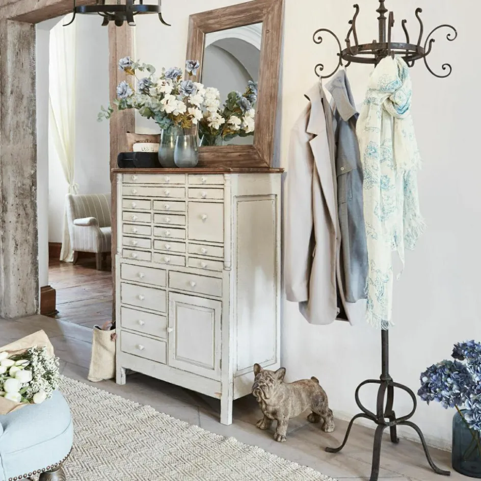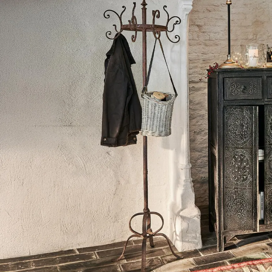 Der Garderobenständer aus antikbraunem Schmiedeeisen bietet auf kleinstem Raum Platz für jede Menge Jacken und Mäntel. Die geschwungenen Haken erfüllen jedoch auch einen dekorativen Zweck: die Garderobe sieht also auch pur ganz zauberhaft aus. Die vier eisernen Beine sorgen zudem für einen sicheren, festen Stand. Und das Sahnehäubchen: Zum Lieferumfang des Ständers gehört ein charmantes Flair, das dieses praktische Accessoire ganz automatisch bei Ihnen Zuhause verbreiten wird – ein Hauch Wiener Kaffeehaus Romantik, ein wenig französischer Chic – eine Kombination die sich mühelos zu jedem Einrichtungsstil kombinieren lässt.