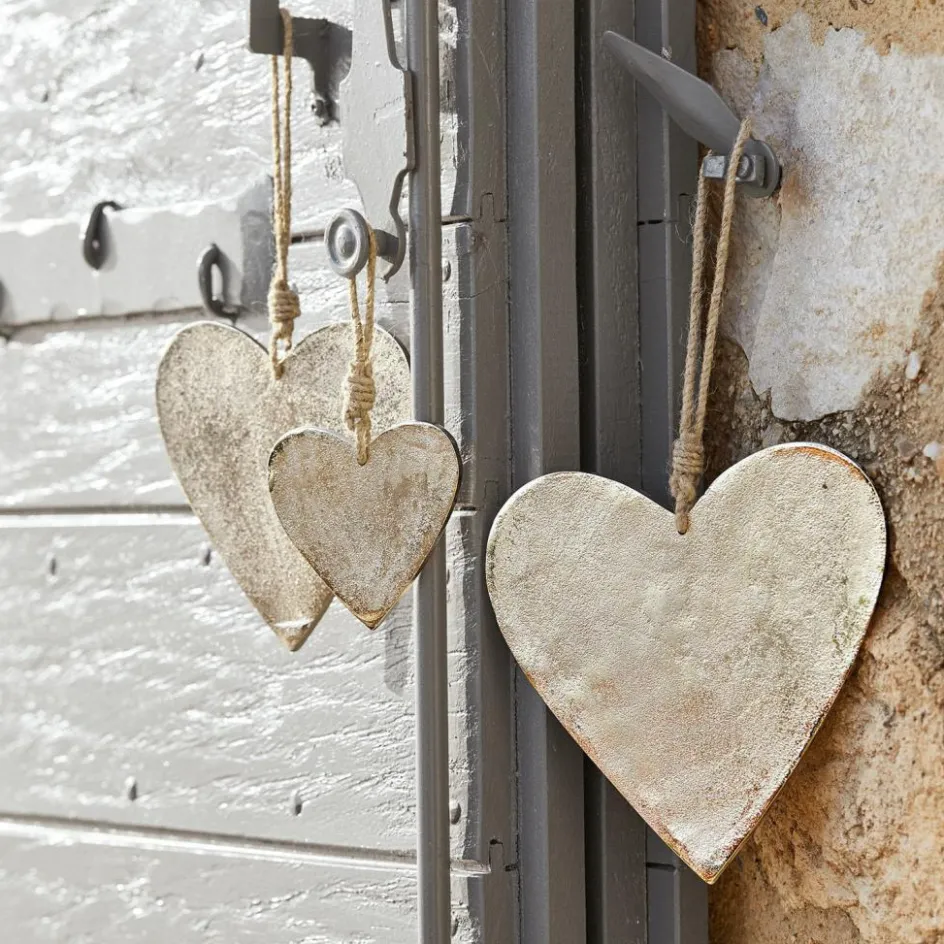 Dieses Set beinhaltet drei unterschiedlich dimensionierte Anhänger in liebreizender Herzform. Sie sind ein perfektes Geschenk für Freunde, Partner und Familie. Der feine Schimmer der antik-veredelten Oberfläche aus Aluminiumguss passt einfach hervorragend zur rustikalen Note der hübschen Jutekordeln. Die Anhänger sind sehr vielseitig und sorgen das ganze Jahr über für romantisches Flair. Ganz egal, ob am Christbaum, im Osternest oder als raffinierter Wandschmuck am Valentinstag. Das Set lässt sich auch hervorragend mit anderen Deko-Objekten kombinieren.