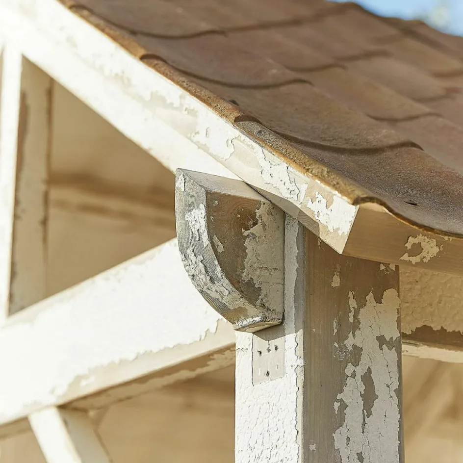 Dieser Pavillon ist nicht nur eine funktionale Überdachung, sondern ein Kunstwerk für Ihren Garten. Das Kiefernholz mit Antik-Finish verleiht dem Gestell eine nostalgische Note, während das robuste Eisen-Dach wetterfesten Schutz bietet. Die authentische Verarbeitung und die natürlichen Materialien fügen sich harmonisch in jede Umgebung ein. Ob als schattiger Platz bei sommerlicher Hitze oder als geschützter Bereich bei leichtem Regen – dieser Pavillon ist der perfekte Begleiter für entspannte Stunden im Freien. Seine großzügige Größe schafft Raum für stilvolle Sitzgruppen und lädt zu langen Gesprächen oder gemütlichen Mahlzeiten ein.