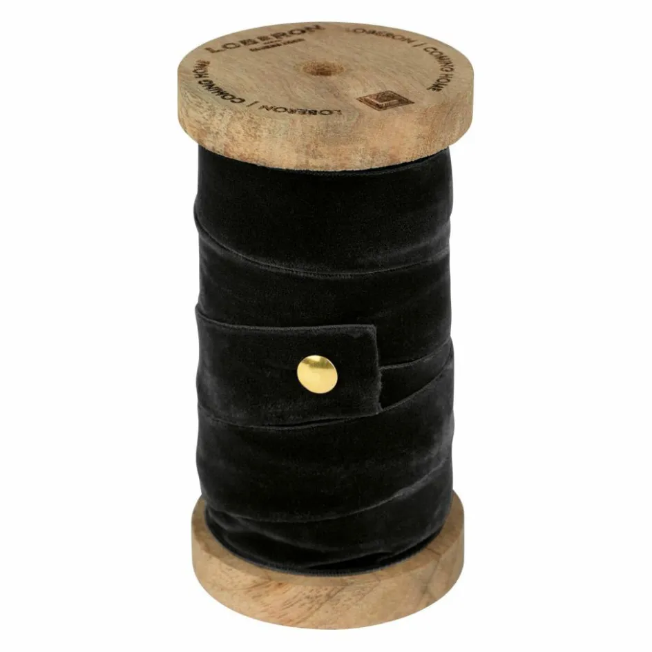 Meistens verschwinden die kleinen Haushaltshelfer nach Gebrauch schnell wieder in der Schublade. Nicht so diese Samtband-Spule. Standhaft setzt sie sich mit einer Spule aus wertvollem Mangoholz und einem Schmuckband aus weichem Samt nobel in Szene. Das LOBERON-Branding sorgt für das i-Tüpfelchen und verrät die Herkunft des hübschen Accessoires. Der Retro-Charme ist unverkennbar. Und die Vielseitigkeit ist enorm. Denn das originelle Design ist zusammen mit schönen Stoffen und kleinen Schmuckstücken auch als Dekoakzent perfekt einsetzbar. Das 1 m langes Samtband mit einseitigem Flor lässt sich komplett abrollen und verleiht Ihren kreativ verpackten Geschenken ein edles Finish. Stil und Funktion können eben wunderbar harmonieren.
