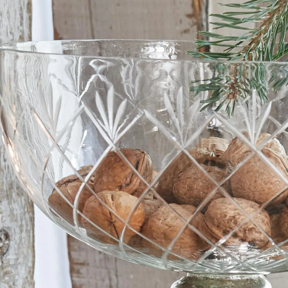 Dieses wunderschöne Accessoire aus Glas wird schnell zum Star des Raums. Während die Schale mit einem eleganten Rautenschliff versehen ist, schimmert der Fuß silbrig. Dank der lebensmittelgerechten Qualität können Obst oder auch leckeres Gebäck wie Muffins oder Kekse stilvoll in der handgefertigten Schale aufbewahrt werden. Doch auch als Deko-Element kann dieser Hingucker wunderbar verwendet werden. Zum Beispiel als kleines Becken für Schwimmkerzen oder getrocknete Orangenschalen oder Potpourris. Ein Multitalent mit dem gewissen Etwas.