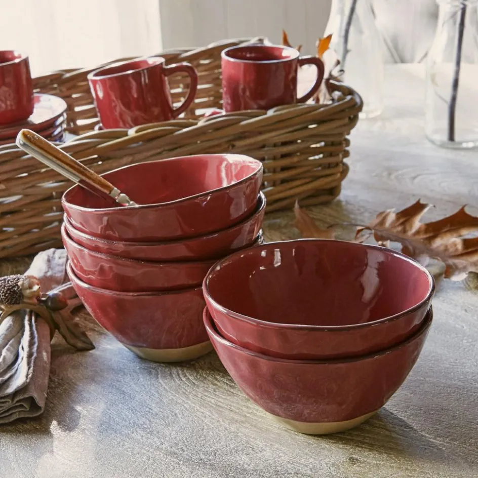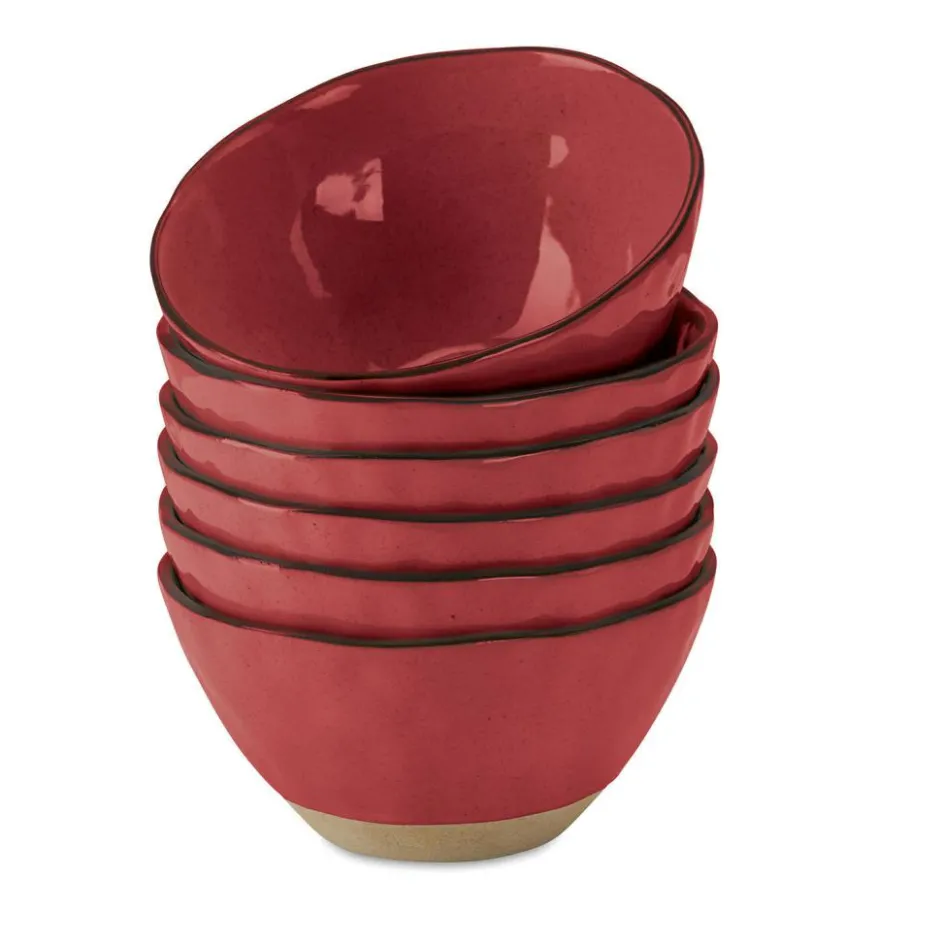 Eine Extraportion Stil bitte – dieses schicke 6er Set bezaubert mit einem individuellen Design. Es hat mediterranen Charme. Die sechs Schüsseln haben einen reizenden, handgetöpfert wirkenden Charakter. So werden kleine, bewusste Unebenheiten zum interessanten Detail. Das Set mit persönlicher Note besteht aus glänzend glasiertem Steinzeug mit einem dekorativen, dunklen Rand und einem unglasierten Boden. Die schönen Schalen lassen sich sehr vielseitig einsetzen – natürlich für feine Leckereien wie Eis, Joghurt, Früchte oder süße Desserts. Doch auch Suppen und kleine Salate schmecken hieraus gleich noch besser. So sind sie von morgens bis abends ein perfekter Begleiter für Ihren stilvoll gedeckten Tisch. Wer mag, kann sie auch mit Dekorativem befüllen. Zu vorhandenem Geschirr oder als Ergänzung zum passenden Set, hiermit beweisen Sie jederzeit guten Geschmack.