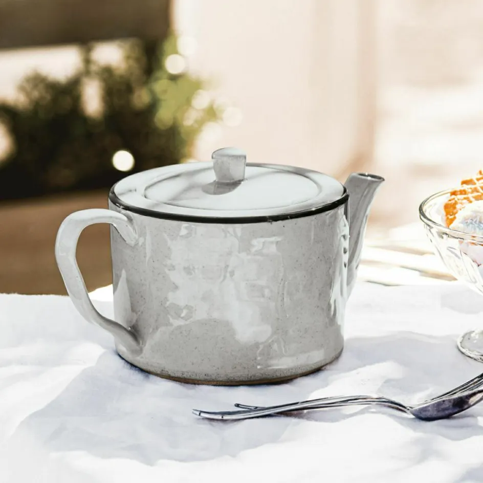 Ein zeitloses Lieblingsstück, mit dem Sie jede Tasse Tee als bewusste Auszeit zelebrieren. Die formschöne Teekanne besteht aus Steinzeug, das mit handgetöpfertem Charme verzaubert. Sie ist bewusst ein wenig uneben gehalten, um den ursprünglichen und leicht mediterranen Charakter zu wahren. Genießen Sie hiermit am Frühstückstisch Ihren Tee, feiern Sie die Tea Time mit Häppchen und Kuchen oder lassen Sie sich abends einen beruhigenden Kräutertee daraus schmecken. Natürlich können Sie in diese Kanne auch allerhand andere Getränke einfüllen und innen wie außen genießen. Oder stellen Sie sie einfach in ein hübsches Regal und bewundern sie die wunderbare Optik und Form dieser Teekanne. Die attraktive und stilvolle Kanne ist einfach an jedem Ort und zu jeder Jahreszeit ein wunderbarer Begleiter. Sie passt wundervoll zum großen Geschirrset 16875 und zu ebenfalls erhältlichen Zuckerdose und Milchkännchen (19234).