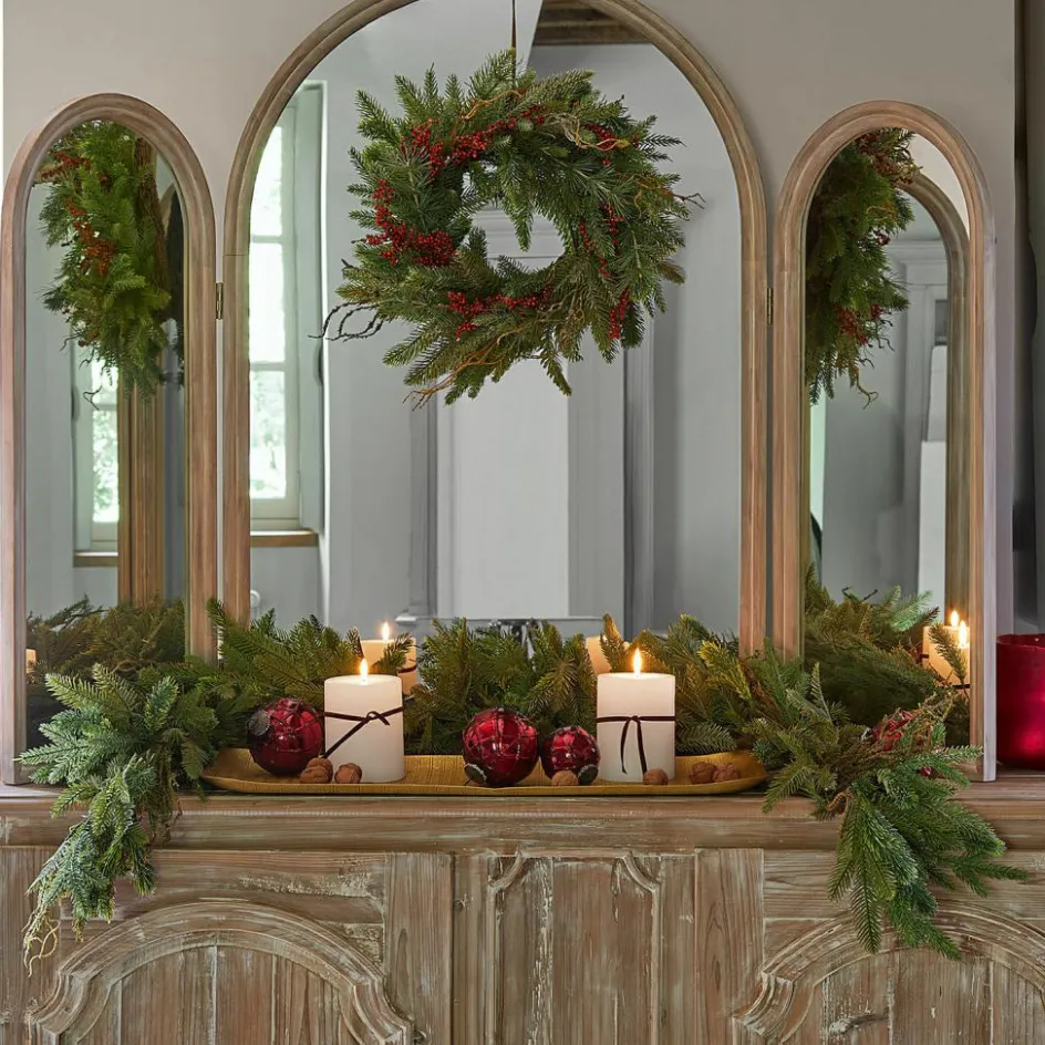 Ein Hauch von Winterwald, der niemals nadelt: Diese täuschend echte Tannengirlande begeistert mit ihrem lebendigen Nadelkleid in sanften Grüntönen. Unterschiedliche Zweigarten und Strukturen sorgen für ein besonders natürliches Gesamtbild, das durch zarte Moosakzente liebevoll ergänzt wird. Dank der flexiblen Basis lässt sich die Girlande ganz individuell drapieren – ob locker über einem Türbogen, kunstvoll um ein Geländer geschlungen oder als Highlight auf dem festlich gedeckten Tisch. Sie wirkt wie frisch gebunden, bleibt jedoch Jahr für Jahr wunderschön.