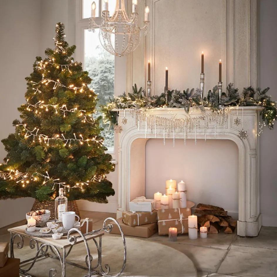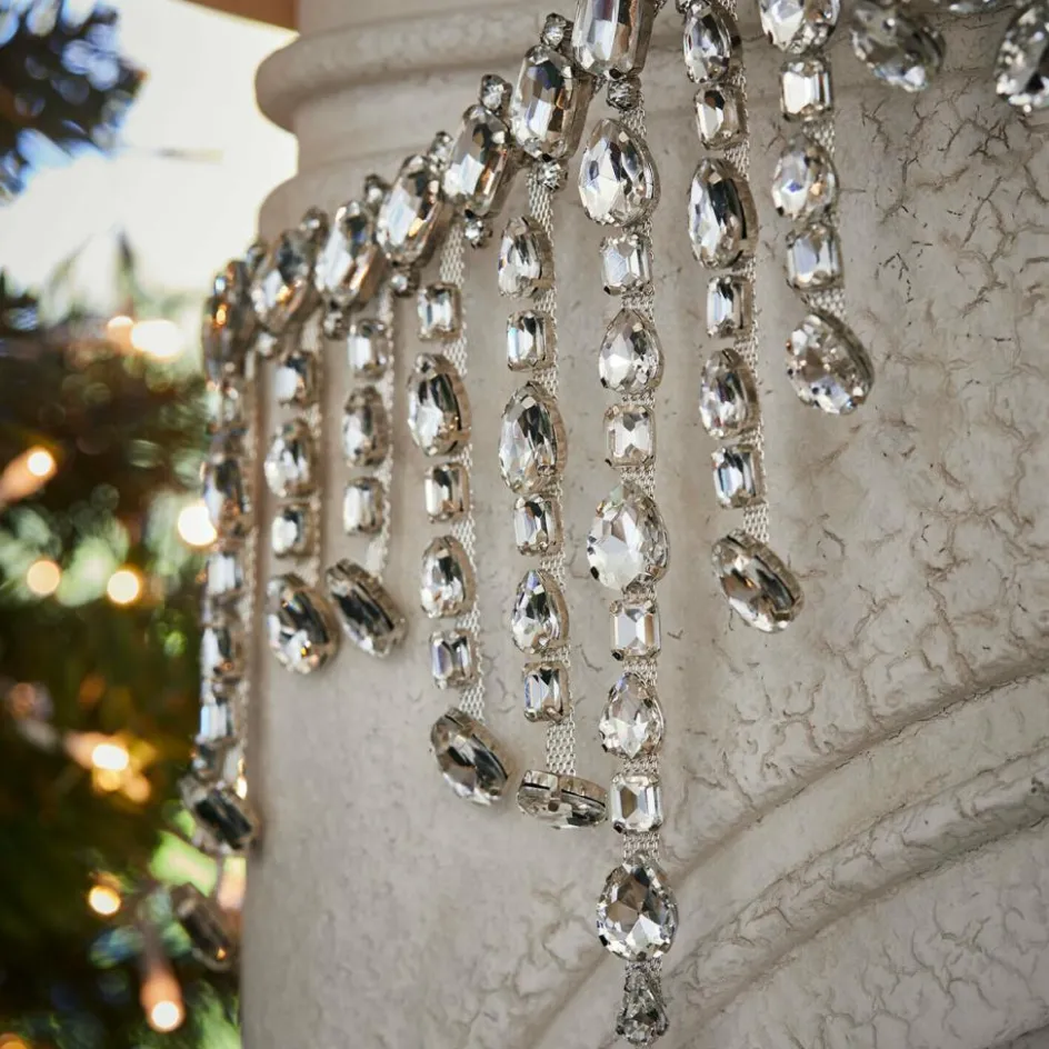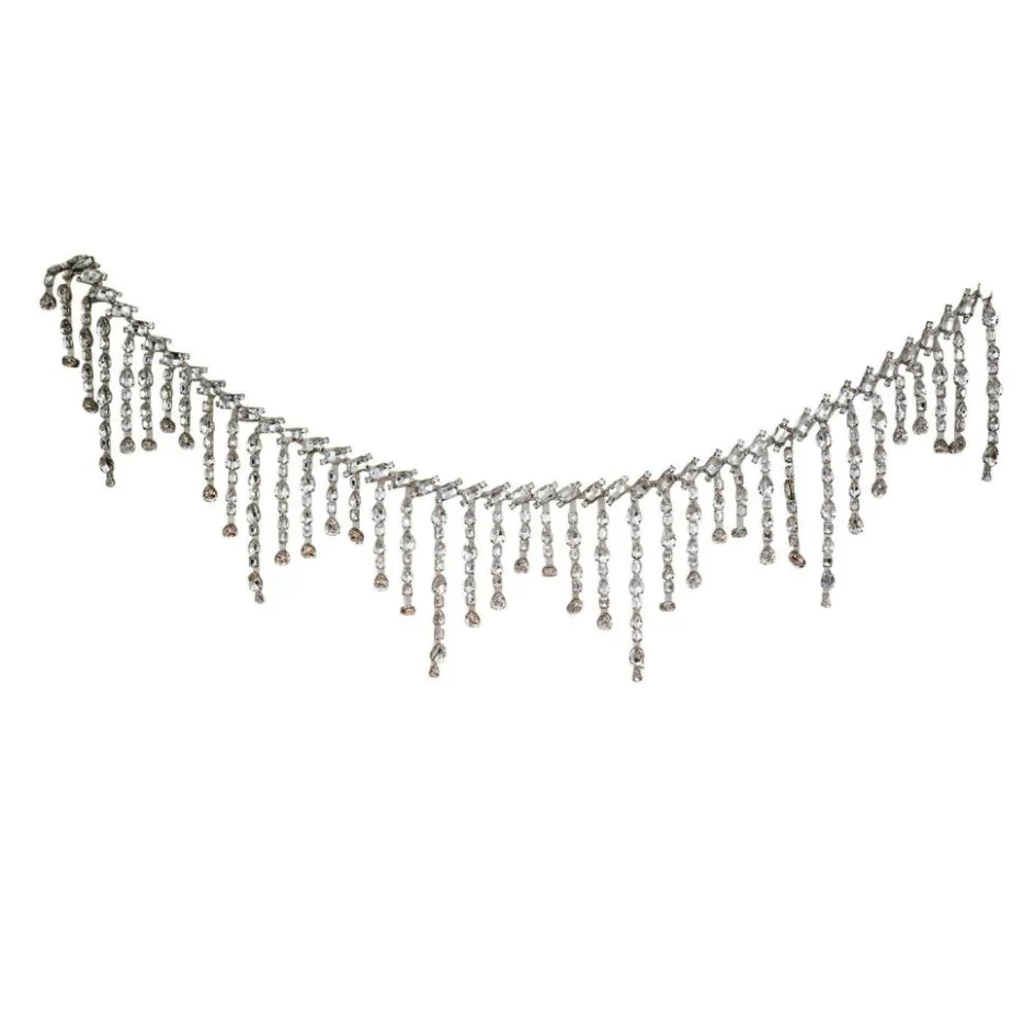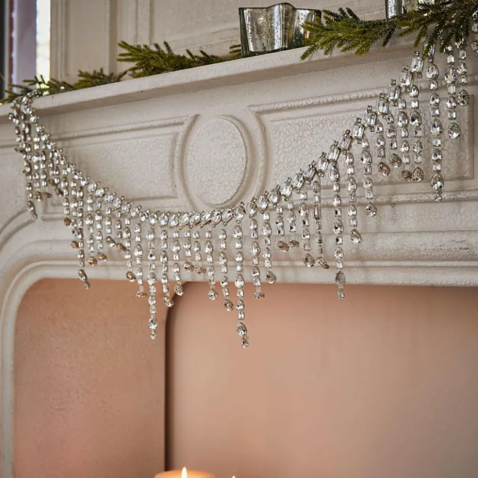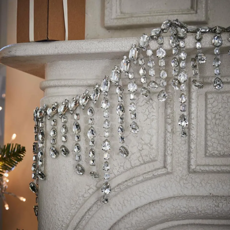 Wie ein zarter Schleier aus Eiskristallen legt sich diese Girlande über Ihre festliche Dekoration. Die aufwendig geschliffenen Glasprismen reflektieren jedes Licht in feinen Facetten und lassen dabei funkelnde Reflexe entstehen – wie Raureif im Morgenlicht. Dank des seitlich angebrachten Hakens lässt sich die Girlande mühelos platzieren, etwa an einem Lüster, am Fensterriegel oder als prunkvoller Abschluss über dem Kamin. Der Wechsel aus kurzen und langen Strängen verleiht ihr eine dynamische Silhouette, die sowohl klassisch als auch extravagant wirkt. Eine Einladung, die Winterzeit mit leuchtender Poesie zu feiern.