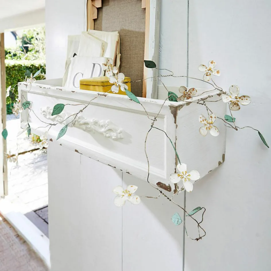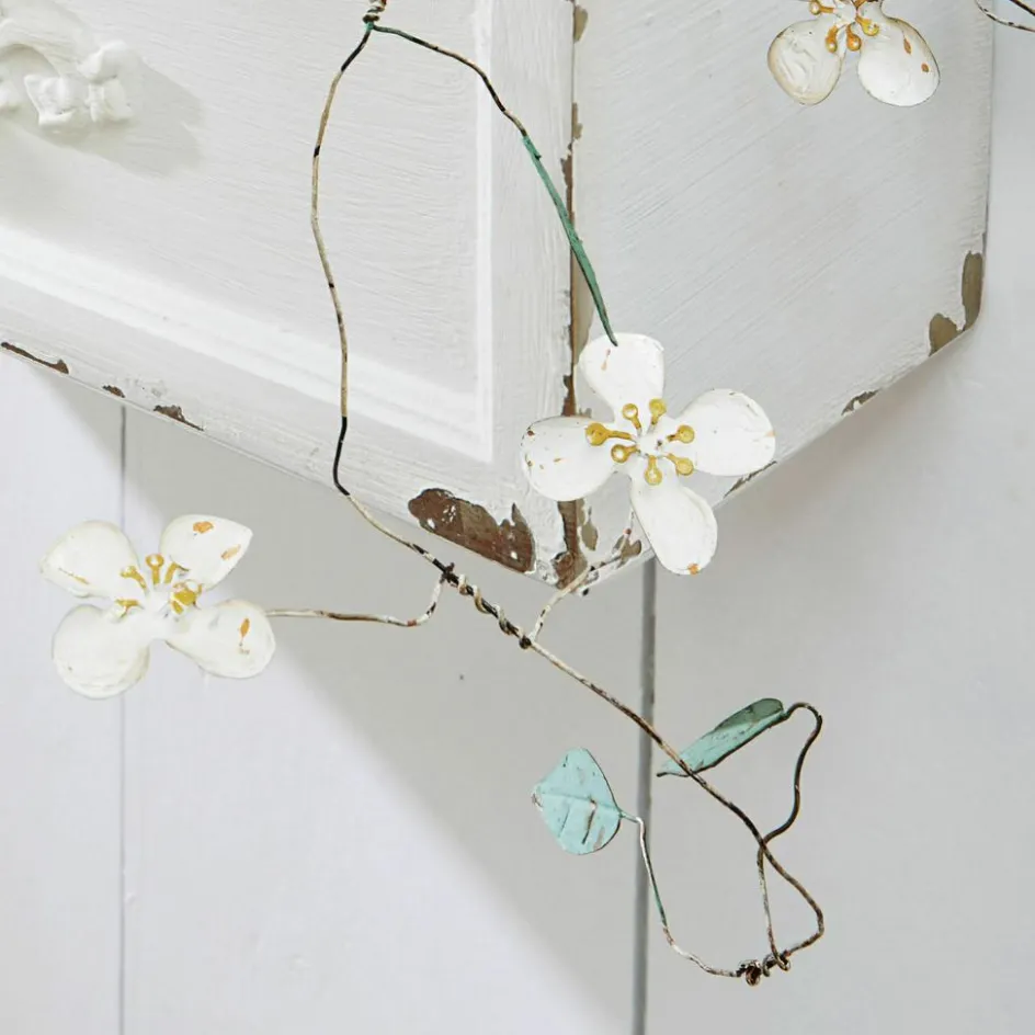 Wie ein Frühlingsgruß aus dem Garten – diese hübsche Girlande mit filigranen Blüten und Blättern aus Eisen ist fein von Hand gearbeitet und sorgfältig handbemalt. Das reizende Accessoire kann ganz nach Belieben geformt werden und so überall eine charmante Dekoration schaffen. Sie erinnert optisch an einen Blütenzweig und ist eine romantische Ergänzung zu einem Ambiente im Landhaus-Stil. Ob Wohnzimmer oder Küche, hiermit kommt ein liebevoller Akzent in Ihr Heim und Sie geben jedem Raum eine freundliche Note – so wird Ihr Zuhause zur Wohlfühloase.