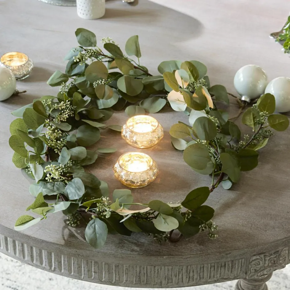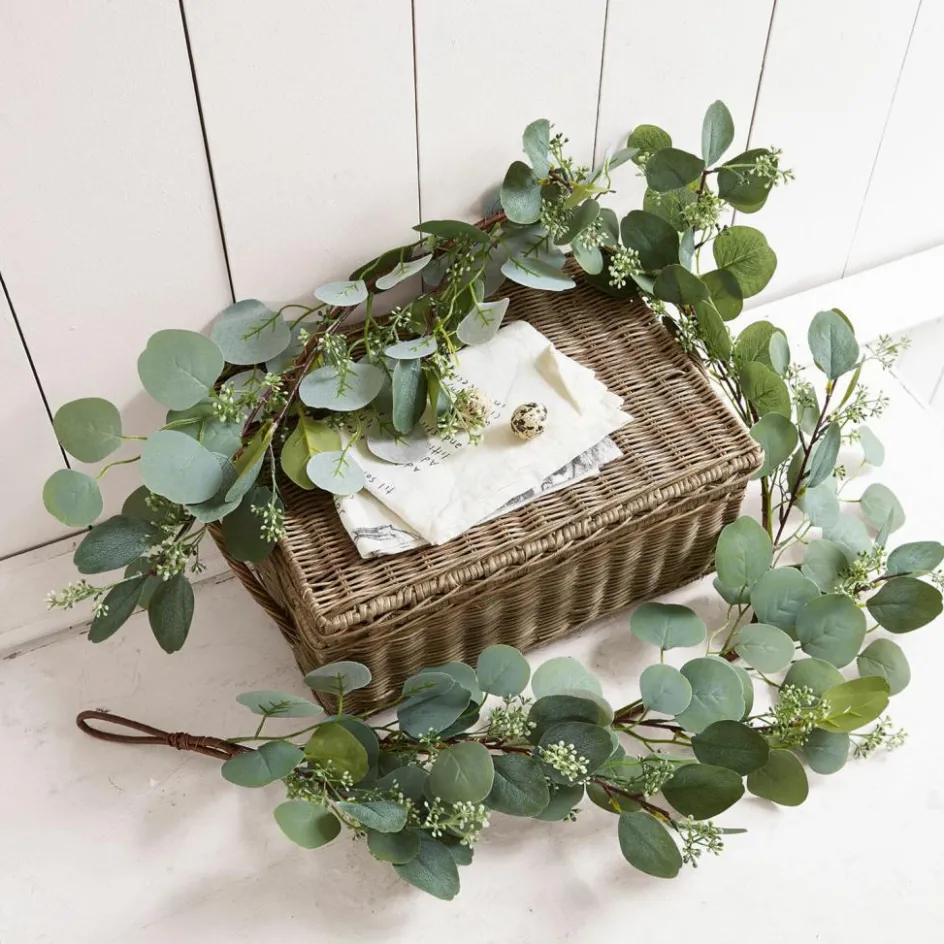 Holen Sie sich die Natur nach Hause, und das ganz ohne Welken, fallende Blätter oder Austrocknen. Diese schöne und sehr naturgetreue Eukalyptus-Girlande ist eine perfekte Nachbildung. Sie ist recht lang und besteht aus Polyester. So bleibt sie für immer grün und Sie haben lange Jahre Freude daran. Jedes Ambiente freut sich über diesen naturnahen Schmuck – im Wohnzimmer oder auf dem Balkon, jetzt grünt es das ganze Jahr über. Sie könnten die Girlande um eine Kaminkonsole winden oder vielleicht am Fenster drapieren. Hier sind der Kreativität keine Grenzen gesetzt. Es gibt eigentlich kein Interior, zu dem dieses stilvolle Accessoire nicht passt, und auf dem Balkon können Sie hiermit eine wunderbar grüne Oase zaubern.