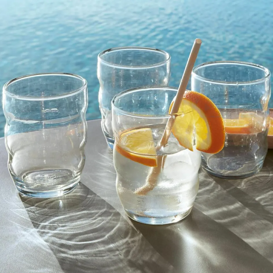 Das Glas-Set ist ein Must-Have für Liebhaber von puristischem und gleichzeitig charmantem Design. Ob beim Frühstück, einem gemütlichen Nachmittag auf der Terrasse oder einem festlichen Dinner – diese Gläser passen sich jeder Situation an. Die kleinen Gläser eignen sich ideal für Wasser, Säfte oder Cocktails, während die großen Gläser Raum für stilvoll servierte Longdrinks oder großzügige Wassergläser bieten. Dank der klaren, zeitlosen Linien und der angenehm glatten Oberfläche liegen sie leicht und bequem in der Hand. Kombiniert mit einem hübschen Untersetzer oder serviert auf einem rustikalen Tablett, wird der Genussmoment zum optischen Highlight.