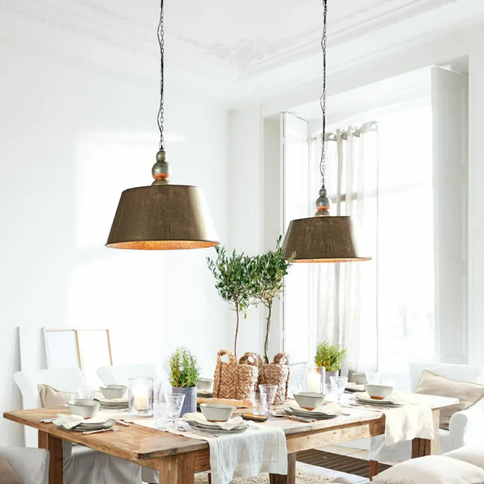 Wissen Sie, was uns beim Anblick dieser Hängelampe als erstes durch den Kopf schoss? Es waren nur drei Buchstaben: „Wow!“ Die Leuchte wirkt alleine schon aufgrund der Schirmgröße imposant und offenbart auf den zweiten Blick zauberhafte Details. Sie wird komplett in Handarbeit gefertigt und das erklärt auch den unverfälschten, rauen Charme des patinierten Eisenschirms. Seine Innenseite ist mit einem besonderen Antik-Finish veredelt, das im Lichtschein silbrig schimmert. Gekrönt wird das Ganze von einem Aufsatz aus Mangoholz, der ebenfalls mit einem Antiksilber-Finish perfektioniert wurde.