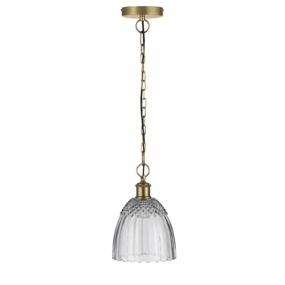 Eine Hängelampe, die sowohl optisch als auch funktional überzeugt. Der klare, strukturierte Glasschirm sorgt für ein wunderschönes Lichtspiel, das den Raum in warmem Glanz erstrahlen lässt. Die Kette und der Baldachin aus Eisen mit Antikgold-Finish verleihen der Lampe einen Hauch von Nostalgie und lassen sie zugleich modern wirken. Diese stimmige Kombination macht die Lampe zu einem wahren Highlight – ob über dem Esstisch, im Wohnzimmer oder als Hingucker im Eingangsbereich. Ein zeitloses Schmuckstück, das Ihrem Zuhause Licht und Wärme schenkt.