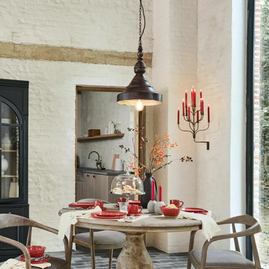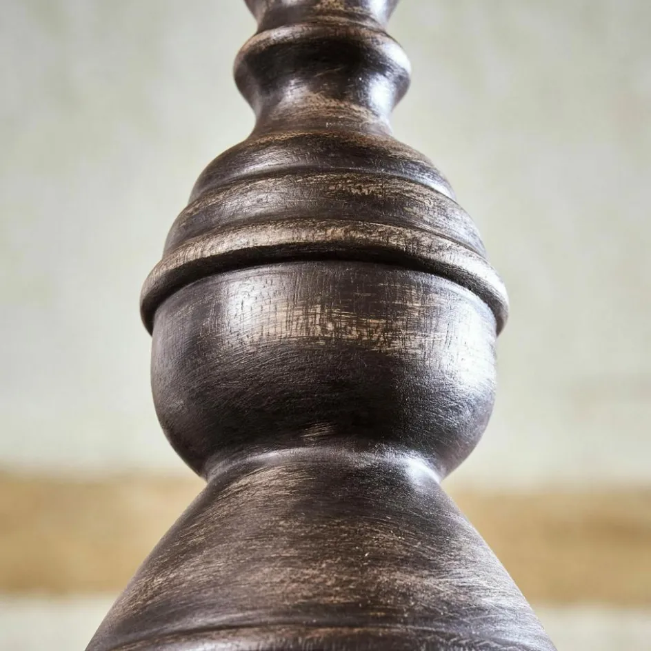Ein Lichtobjekt, das Geschichten erzählt – diese Hängelampe bringt das Gefühl eines alten Landhauses direkt in Ihre vier Wände. Gefertigt aus massivem Mangoholz und komplett in ein antikschwarzes Finish getaucht, wirkt sie wie ein liebevoll bewahrtes Fundstück aus vergangenen Zeiten. Im Inneren befindet sich ein Antiksilber-Finish, was auch bei ausgeschaltetem Licht hübsch glänzt. Besonders der kunstvoll gedrechselte Abschluss verleiht ihr eine behagliche Ausstrahlung, wie man sie in charmanten Bauernküchen oder über großzügigen Esstischen auf dem Land findet. Das warme Licht bricht sich sanft an der dunklen Innenfläche des Schirms und schafft eine Atmosphäre voller Geborgenheit und Authentizität. Ob allein oder in Reihe über einem langen Tisch – diese Lampe schenkt jedem Raum eine unverwechselbare Note.