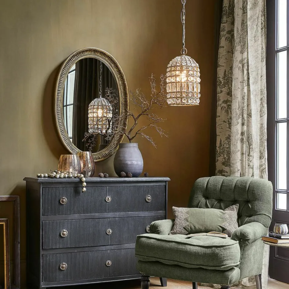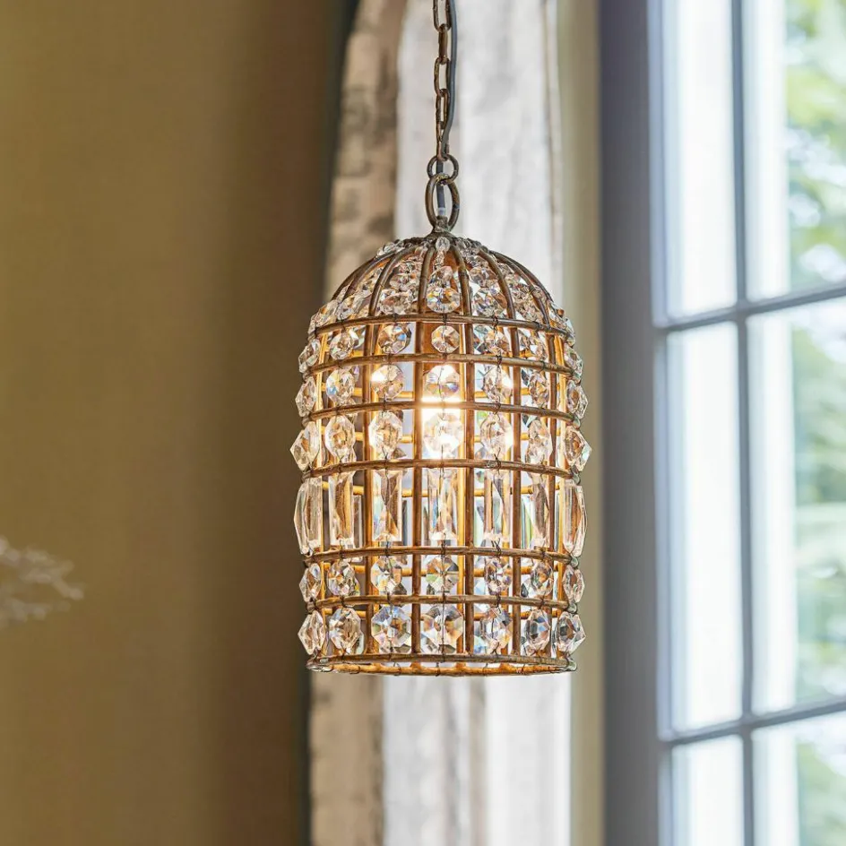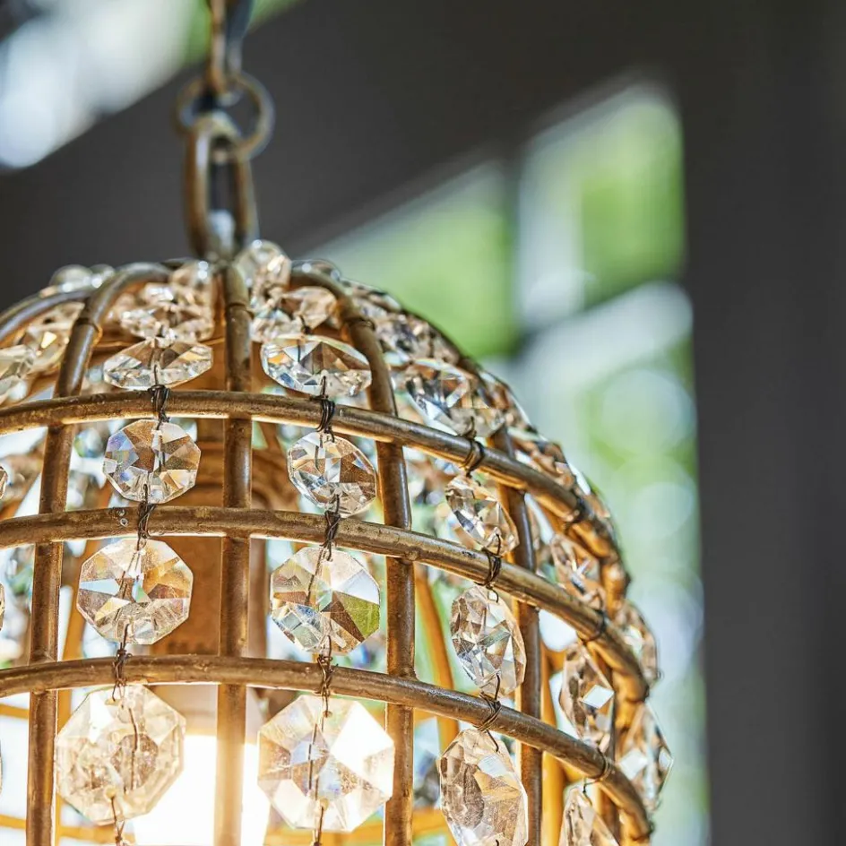 Erleben Sie besonderen Luxus. Dieses außergewöhnliche Schmuckstück ist der Eye-Catcher in jedem Raum. Das filigrane Eisen-Gestell und die funkelnden Glasprismen erzeugen einen faszinierenden Effekt, der an einen bezaubernden Vintage-Vogelkäfig erinnert. Die Glasperlen strahlen dezent und verleihen Ihrem Zuhause eine stilvolle Eleganz. Die Höhe der Lampe kann individuell angepasst werden, um eine perfekte Atmosphäre zu schaffen. Ganz gleich, ob im Studierzimmer, Wohnzimmer oder anderen Räumen – überall können Sie den einzigartigen Charme dieses leuchtenden Kleinods genießen. Ein Leuchtmittel ist nicht im Lieferumfang enthalten, so können Sie selbst etwas Passendes aussuchen.