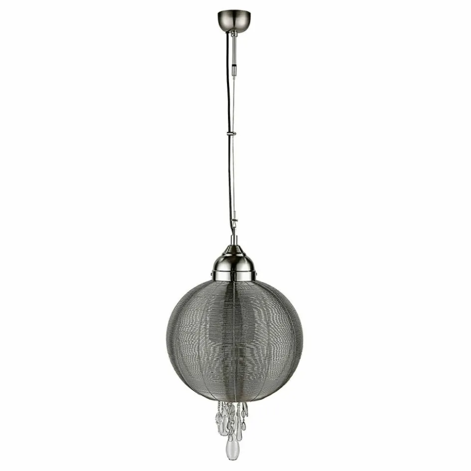 Erleben Sie die unvergleichliche Eleganz dieser aufwendig gefertigten Hängelampe, die aus einem kunstvoll umwickelten Eisendraht besteht. Der zarte Draht umschließt das Licht sanft und erzeugt ein faszinierendes Spiel von Licht und Schatten. Besonders beeindruckend sind die Glasprismen an der Unterseite der Lampe, die das Licht in funkelnde Reflexionen verwandeln und für eine zauberhafte Atmosphäre sorgen. Diese Hängelampe ist nicht nur ein funktionales Beleuchtungselement, sondern ein wahres Kunstwerk, das durch seine sorgfältige Handarbeit und die Verwendung hochwertiger Materialien besticht. Ihre einzigartige Form und das filigrate Drahtgeflecht machen sie zu einem außergewöhnlichen Blickfang, der jedes Interieur bereichert und ihm eine besondere Note verleiht.