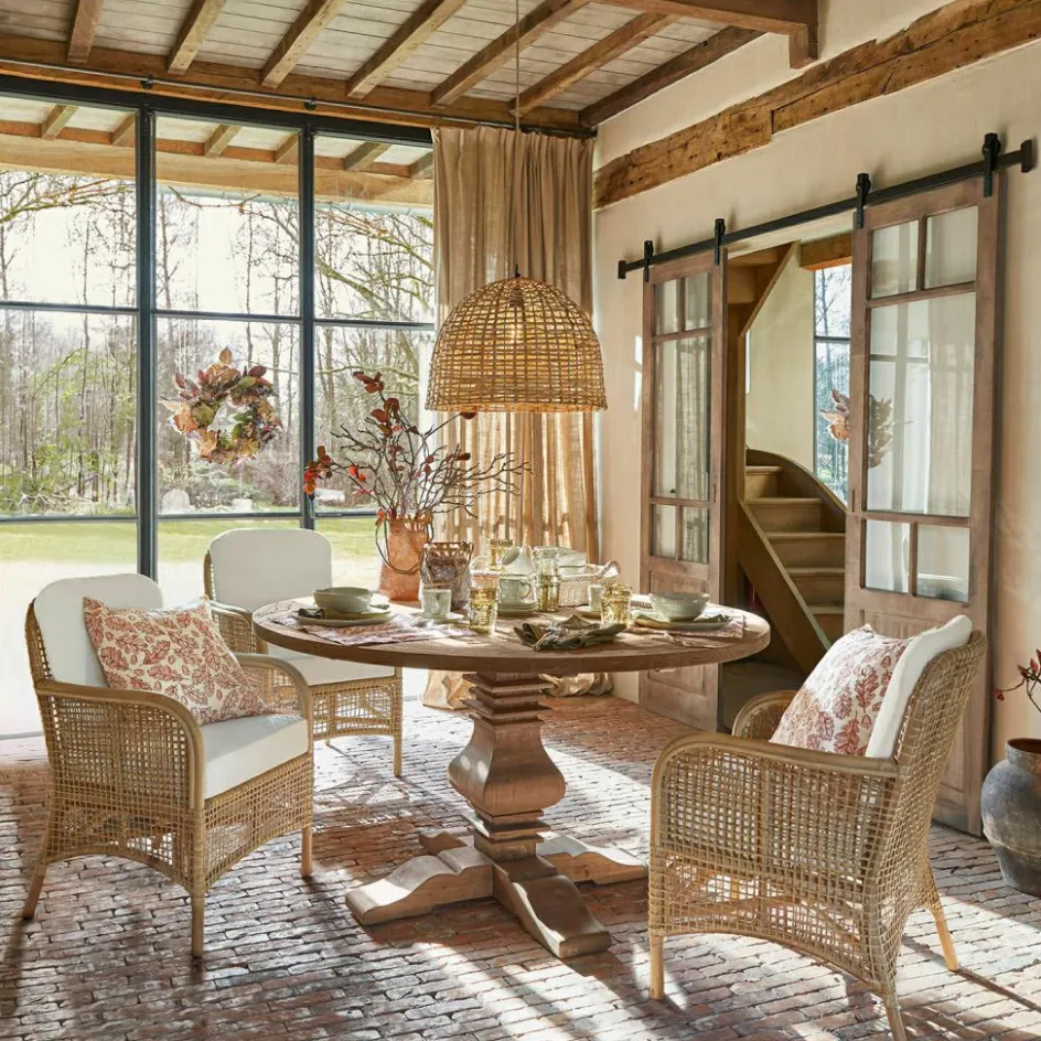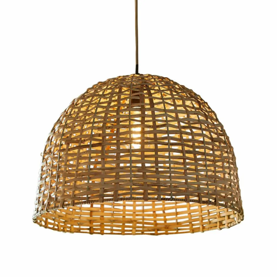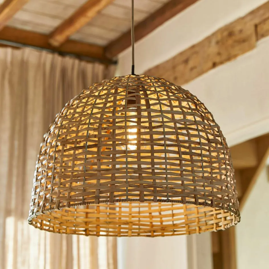 Naturmaterialien liegen im Trend – und verleihen auch Lampen eine natürliche Leichtigkeit. Das beweist auch diese Hängelampe, dessen großes, halbkugelförmiges Metallgestell von Hand mit robustem Schilfrohr umflochten ist. Das luftige Geflecht in sanftem Naturton strahlt eine gemütliche Helligkeit aus und lässt an der Wand wundervolle Lichteffekte entstehen. Besonders schön harmoniert der Lichtspender mit Einrichtungen im Scandi-Chic oder klassischen Landhaus-Stil – perfekt über dem großen Holztisch in der Küche oder im Esszimmer – eben dort, wo man gerne zusammensitzt und man durch das Licht eine entspannte Wohlfühl-Atmosphäre schafft.