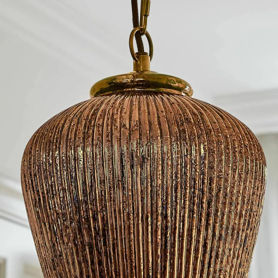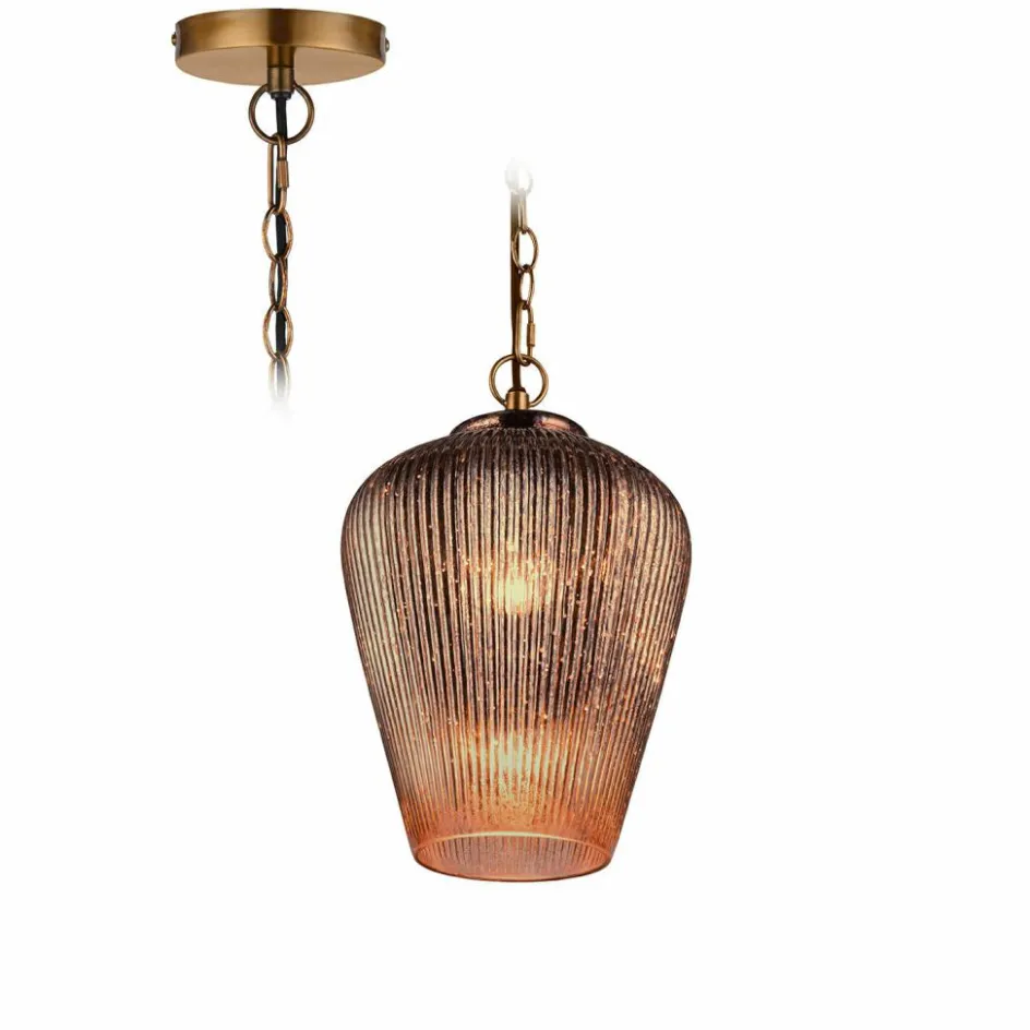 Ein echtes Highlight für stilvolle Wohnräume: Diese Hängelampe verbindet Vintage-Ästhetik mit raffinierter Lichtwirkung. Ihr geriffelter Lampenschirm aus Glas mit Bauernsilber-Finish reflektiert das Licht auf kunstvolle Weise und sorgt für ein faszinierendes Spiel aus Glanz und Schatten. Der Baldachin aus Eisen mit Antikgold-Finish setzt einen edlen Akzent und verstärkt den nostalgischen Charakter der Lampe. Ob über dem Esstisch, in einer gemütlichen Leseecke oder als Blickfang im Flur – sie verleiht jedem Raum eine einladende, warme Atmosphäre. Ein zeitlos schönes Stück, das Eleganz und Gemütlichkeit perfekt vereint.