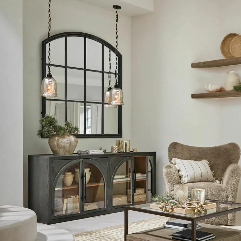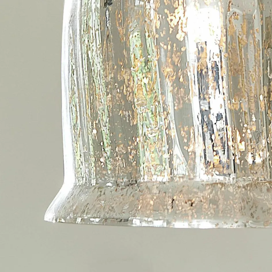 Setzen Sie stilvolle Akzente mit dieser außergewöhnlichen Hängelampe, deren mundgeblasener Glasschirm im edlen Bauernsilber-Finish gehalten ist. Die geschwungene Form und die glänzende Oberfläche des Glasschirms reflektieren das Licht auf beeindruckende Weise und schaffen eine warme, einladende Atmosphäre. Jede Lampe ist ein Unikat, das durch die handgefertigte Verarbeitung und die charakteristische Struktur des Glases besticht. Die rustikale Kette und die robuste Aufhängung ergänzen das Design perfekt, sodass diese Hängelampe sowohl in modernen als auch in klassischen Einrichtungen ein echtes Highlight darstellt.