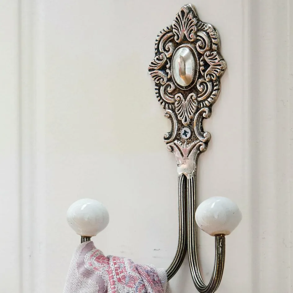 Gerade beim Thema Inneneinrichtung sind es kleine Details, die den Ton bestimmen. Wenn man sich ein Zuhause als Story vorstellt, dann sind sie der rote Faden, der die Geschichte zusammenhält. Genau wie diese rustikalen Wandhaken, die direkt aus einem alten französischen Landhaus stammen könnten. Bezaubernde Ornamente definieren das raffinierte Design. Edel, elegant und glanzvoll, aber nicht protzig. Das authentische Antik-Finish sorgt für einen tollen Kontrast und passt perfekt zu den hellen Knäufen aus Keramik. Letztere sind nicht nur hübsch anzusehen, sondern auch für die Funktion essenziell. Einfache Haken mit spitzen Enden können Textilien beschädigen und unschöne Beulen in Jacken- und Mantelkrägen hinterlassen.