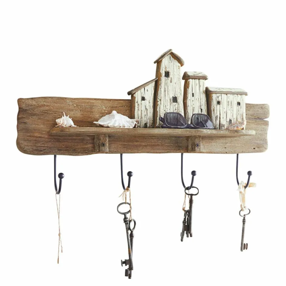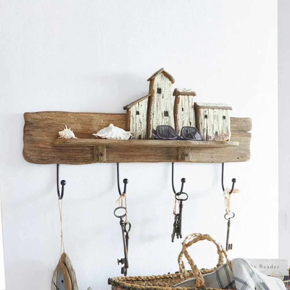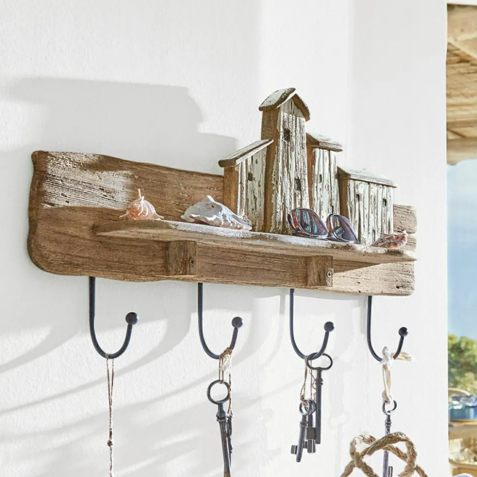 Das Hakenboard, kunstvoll aus Paulowniaholz geschnitzt und mit einem Antik-Finish versehen, erzählt eine Geschichte von Tradition und handwerklichem Können. Die sichtbaren Gebrauchsspuren und die individuelle Holzstruktur machen jedes Stück zu einem Unikat. Die Eisenhaken, angebracht an diesem Fundament aus vergangenen Zeiten, bieten nicht nur praktischen Nutzen, sondern ergänzen auch das nostalgische Design. Dieses Hakenboard ist nicht nur ein praktischer Alltagshelfer für Schlüssel, Taschen und Schals, sondern auch eine Zierde für Ihre Wand, die Gäste und Familie gleichermaßen willkommen heißt und ein Gefühl von Zuhause vermittelt.
