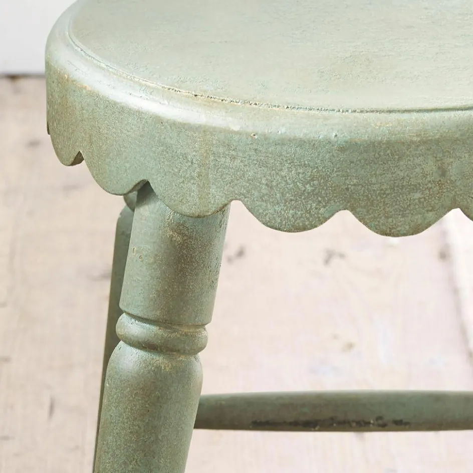 Ein Hauch von ländlicher Gemütlichkeit trifft auf robustes Design. Dieser Hocker aus solidem Holz besticht durch seine markante Struktur und das verspielte Shabby-Chic-Finish in Antikgrün. Der leichte Used-Look vermittelt eine zeitlose, wohnliche Atmosphäre, die an vergangene Zeiten erinnert. Die liebevoll verarbeiteten, gedrechselten Beine und die gleichmäßig abgerundete Sitzfläche machen ihn zu einem besonderen Blickfang. Ob als zusätzlicher Sitzplatz, als dekorative Ablage oder als kleiner Beistelltisch – dieser Hocker bringt in jedem Raum den Charme eines Landhauses zum Ausdruck.