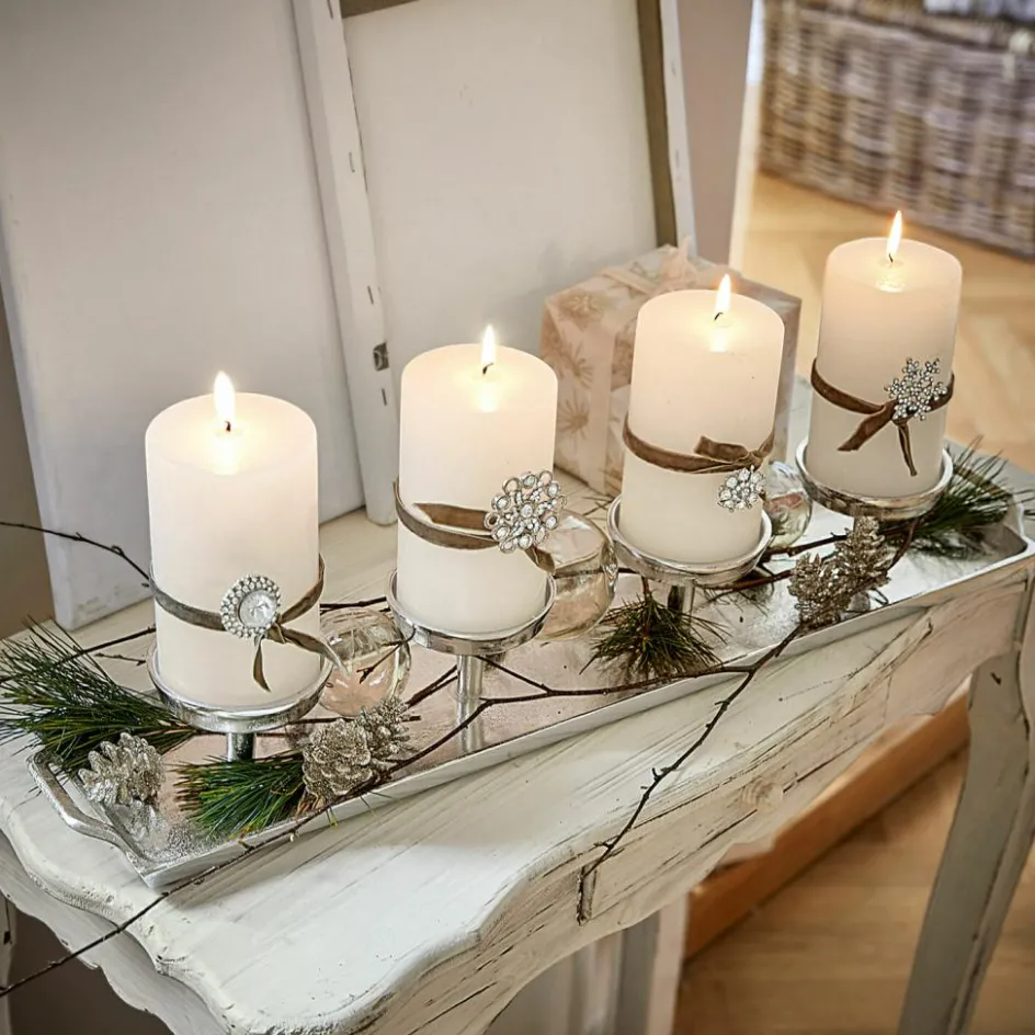 Einfach eine schmucke Idee: Zur Dekoration von Pinnwänden, Memoboards oder Kerzen eignen sich diese funkelnden Deko-Pins aus Eisen im 4er Set. Die geschliffenen Schmucksteinchen aus Glas wurden in unterschiedlichen Designs gefasst – die eisernen Fassungen mit einem edlen Finish in Antiksilber versehen. So erstrahlt selbst die alltäglichste Notiz an einer schlichten Pinnwand in beinahe königlichem Glanz. Schön für Fans des romantischen Stils und verspielten Designs oder: als das absolute Tüpfelchen auf dem i Ihrer Weihnachts- und Silvester-Dekoration. Denn: Nicht nur zum festpinnen von Einkaufszettel und Co. eignen sich die vier silberfarbenen Pins – unser Tipp: Verschönern Sie mit den Sternen und Schneeflocken einfach eine schlichte Stumpenkerze in Weiß oder Schwarz. Das Ergebnis ist ein rundum individuelles Deko-Highlight mit royalem Touch. Und das Beste: Ist die Kerze heruntergebrannt, pinnen Sie die zauberhaft funkelnden Schmuckstücke einfach an die Nächste.