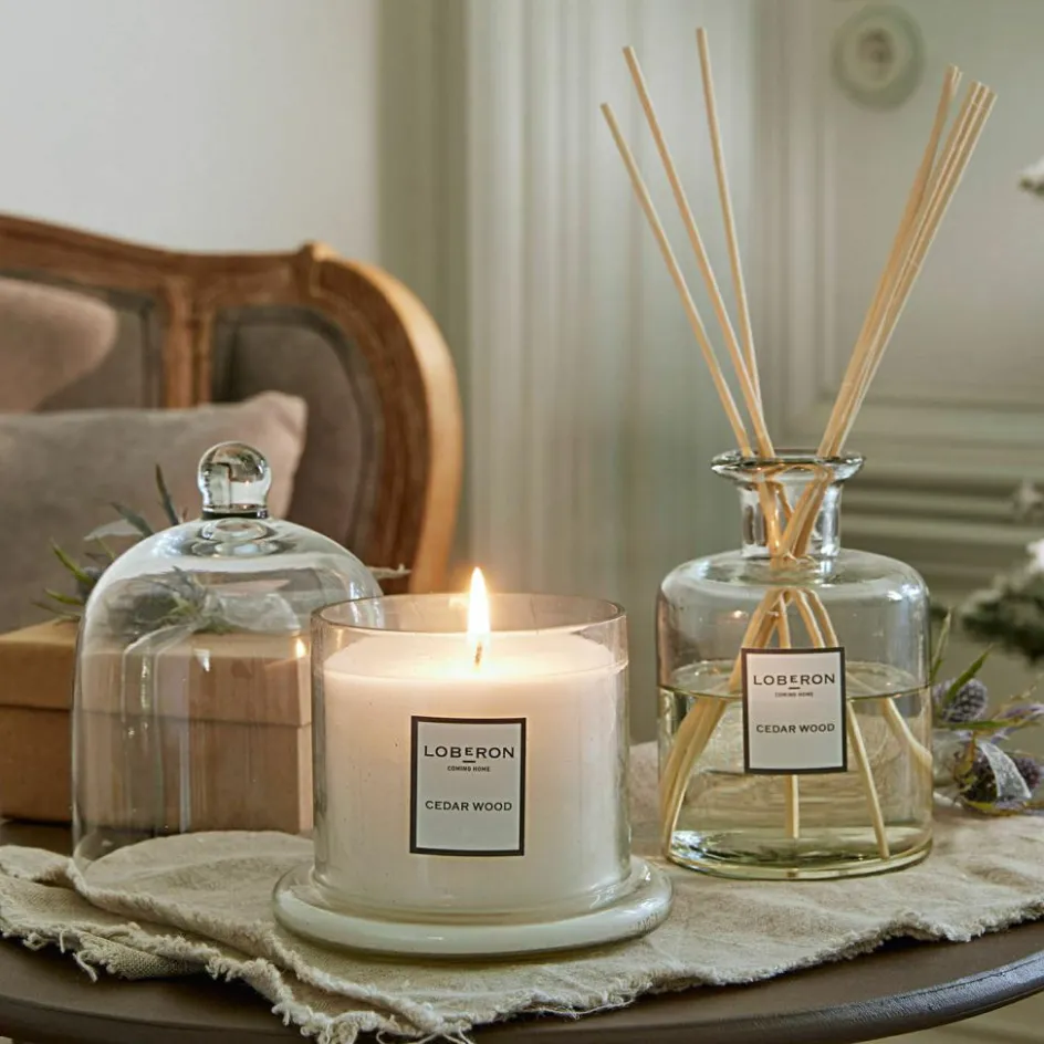 Ein traumhafter Duft und eine luxuriöse Dekoration in einem – dieses wertvolle Set ist perfekt für alle, die edle Düfte lieben. Erleben Sie eine stilvolle Duftkomposition, die jeden Raum in eine traumhafte Duftwelt entführt. Dabei spielen zwei Duftspender die Hauptrolle: Die stilvolle Duftkerze hat eine schmückende Glas-Cloche, der Raumduft mit Stäbchen ist in einem hübschen, gläsernen Behälter untergebracht. Der Flüssigduft wird in einem separaten Behälter geliefert und kann daher individuell portioniert werden. Alle Glasbehälter sind mundgeblasen und mit einem LOBERON-Print verziert. Ein tolles Set mit geschmackvollem Akzent und auch eine sehr gute Geschenkidee. Die hölzernen Duftstäbchen geben den Duft kontinuierlich und dosiert ab, während die Kerze für romantisches Licht und ein Dufterlebnis zugleich sorgt. Die perfekte Wahl für das Schlafzimmer, im Bad oder im Wohnzimmer und wirklich ein Erlebnis für alle Sinne. Derzeit gibt es unser Dufset in diesen himmlischen Duftrichtungen: Zedernholz, Oud, Ibiza und Hearth & Birch. Der Geruch von Zedernholz erklärt sich natürlich von selbst. Der Duft Oud eröffnet mit einem würzigen Zitrusakkord aus Kardamom und Bergamotte. Das Hauptthema ist ein holziger Komplex aus Agarholz, Zedernholz und Patschuli mit einem blumigen Lilienakkord. Die Basisnote besteht aus holzigem Amber mit einem süßen Benzoe-Vanille-Moschus-Charakter. Bei Hearth & Birch stehen Zitrusfrüchte und Kräuter im Vordergrund. Ein dezenter Holzrauch-Geruch mischt sich darunter und veredelt die Duftnote. Bei der Variante Ibiza erhalten Sie eine blumige, süße und leicht holzige Durftnote. Vermengt mit etwas Moschus und Kampfer ergibt sich so ein betörender Raumduft.