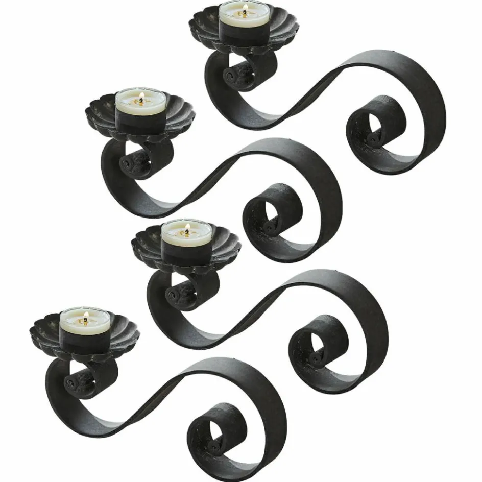Lassen Sie sich verzaubern von der faszinierenden Symbiose aus Stärke und Anmut, die unser 4er Set Kerzenständer in jedem Detail verkörpert. Die Schönheit des geschwungenen Metalls, in seiner satten, tiefen Farbgebung, ruft die Bilder von antiken Spiralen hervor und bringt die Essenz klassischer Eleganz in Ihr modernes Heim. Diese Kerzenständer sind nicht nur Träger von Licht, sondern auch Zeugen exquisiter Handwerkskunst, welche die Natur von Metall in ein poetisches Spiel der Formen verwandelt. Die Oberfläche jedes Ständers ist sorgfältig bearbeitet, um nicht nur das Auge zu erfreuen, sondern auch einen einladenden Reiz zu bieten. Die Ständer sind so entworfen, dass sie sowohl Teelichter als auch kleine Stumpenkerzen aufnehmen können, die, obwohl nicht im Lieferumfang enthalten, in diesem kunstvollen Kontext sicherlich noch schöner leuchten werden.