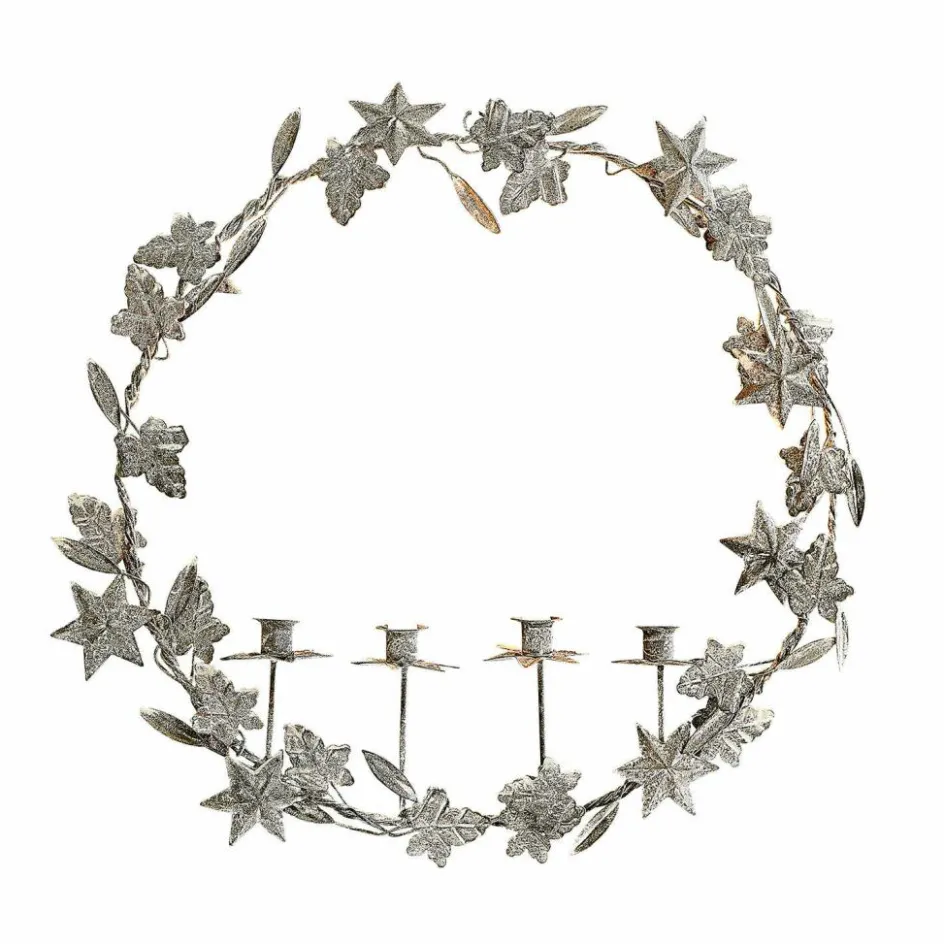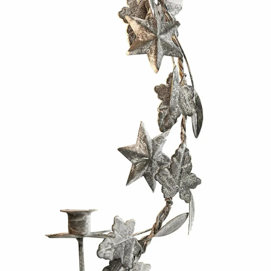 Lassen Sie sich von der charmanten Anmut dieses Kerzenhalters verzaubern. Das kunstvolle Antikgrau-Finish verleiht ihm eine nostalgische Eleganz, während die filigranen Sterne und Blätter einen Hauch von Natur in Ihr Zuhause bringen. Aus robustem Eisen gefertigt, vereint dieser Kerzenhalter Langlebigkeit mit ästhetischer Finesse. Vier Kerzen finden hier ihren Platz und schaffen ein sanftes, flackerndes Licht, das jeden Raum in eine warme, einladende Atmosphäre taucht. Ob als Highlight an einem Fenster oder an anderer Stelle – dieser Kerzenhalter ist ein wahrer Blickfang, der Ihre Einrichtung auf stilvolle Weise ergänzt.