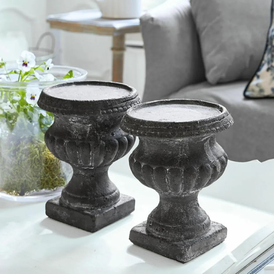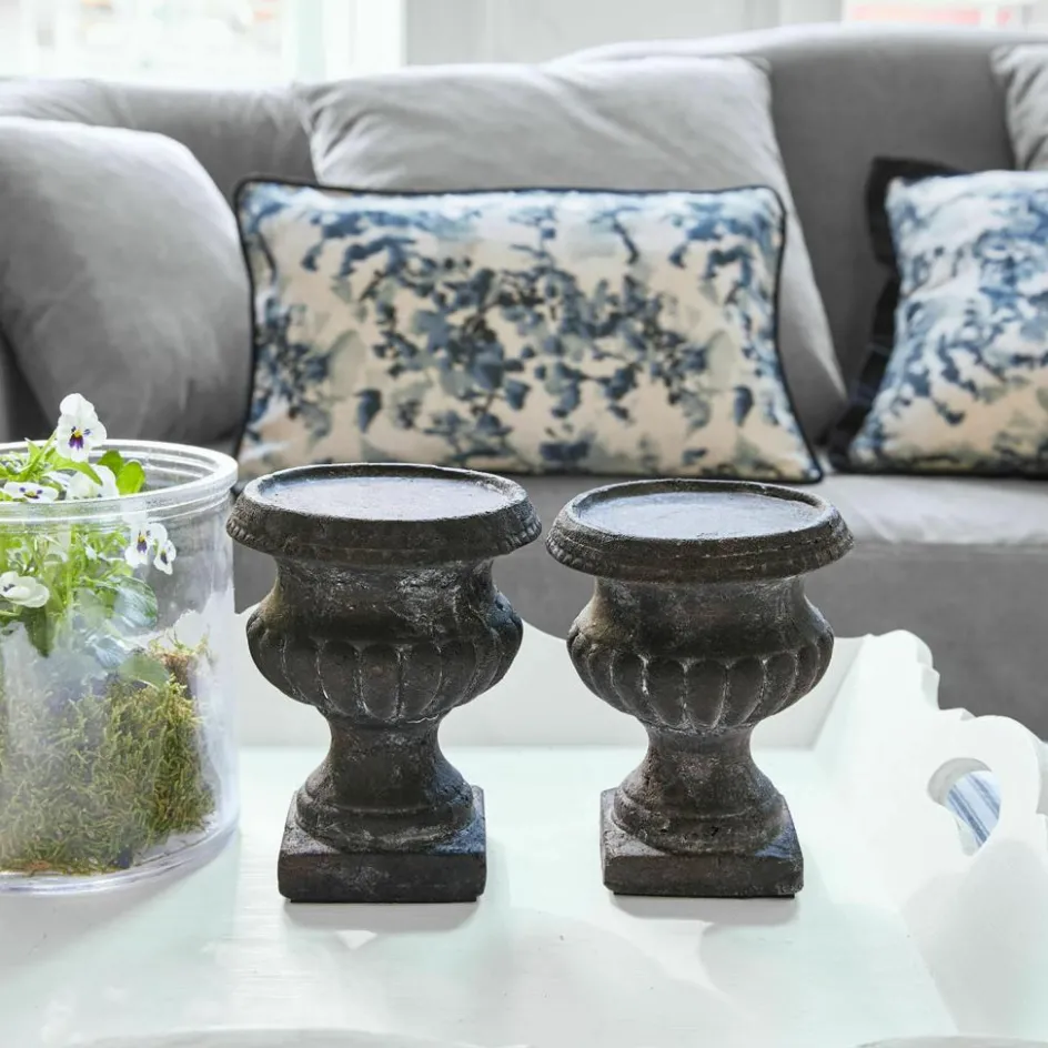 Diese beiden edlen Kerzenständer sind ein stilvolles Duo mit antiker Note. Sie bestehen aus Terrakotta mit Antik-Finish und sind fein von Hand gearbeitet. Das attraktive Duo im mediterranen Stil zaubert das Flair des sonnigen Südens in Ihr Heim, sodass Sie sich immer wie im Urlaub am Mittelmeer fühlen können. Wenn Sie obenauf Stumpenkerzen platzieren, kehrt ein heimeliger Lichtschein ein, der zum Fernsehabend, dem romantischen Dinner oder beim Schaumbad das Leben versüßt. Ob am Fenster oder als Tischschmuck platziert, mit diesen beiden eleganten Accessoires wird Ihr Zuhause gleich doppelt so gemütlich und sehr geschmackvoll dekoriert.