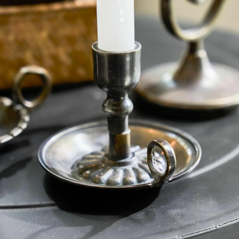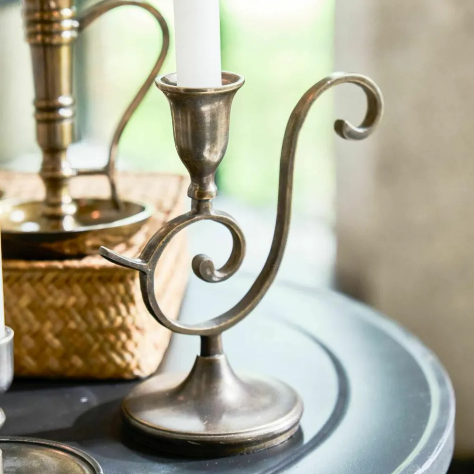Wie aus einem historischen Theaterstück entsprungen, erzählen diese fünf Kerzenständer Geschichten von Eleganz, Licht und leiser Poesie. Jeder einzelne ist ein kleines Kunstwerk aus Aluguss – mal mit floraler Kante, mal mit kunstvoll geschwungenem Henkel, mal geradlinig und streng. Die Oberfläche zeigt sich in warmen Schattierungen von Altbronze über Messing bis hin zu Anthrazit – jedes Stück bringt seine ganz eigene Stimmung mit. Die kleinen Tropfschalen bewahren Ihre Tafel vor Wachsresten, während die nostalgischen Griffringe ein stilvolles Tragen ermöglichen. Ob auf dem Esstisch, dem Kaminsims oder im Fenster – dieses Set vereint Handwerkskunst und Charme mit einem Hauch Romantik.
