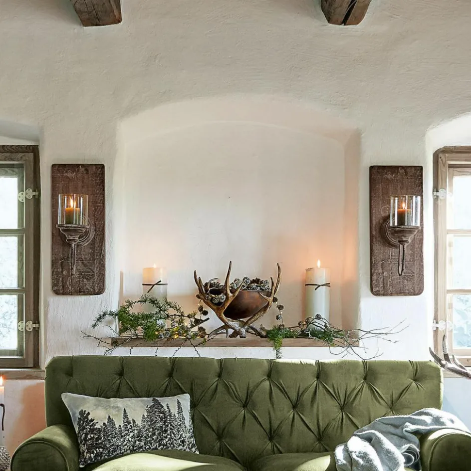 Das warme, lebendige Licht einer Kerze vermittelt einen Hauch von Romantik, der sich einfach durch nichts ersetzen lässt. Ein schöner Wandkerzenhalter ist aber nicht nur Lichtspender, sondern auch ein dekoratives Highlight jedes Zuhauses. Dieses Exemplar fügt sich mit seinen hochwertigen Materialien und einer dezenten Silhouette nahtlos in jedes Interieur ein. Seine Basis aus wiederaufbereitetem Kiefernholz weist eine besonders attraktive Maserung auf, die perfekt mit dem antiken Finish des Eisengestells harmoniert. Der formschöne Glaszylinder punktet mit schlichter Eleganz, sorgt für eine gleichmäßige Lichtstreuung und rundet das Design gekonnt ab. All diese Vorzüge machen den Wandkerzenhalter zu einem echten Hingucker, ganz gleich, ob in Wohnzimmer, Küche oder auf einer überdachten Terrasse.